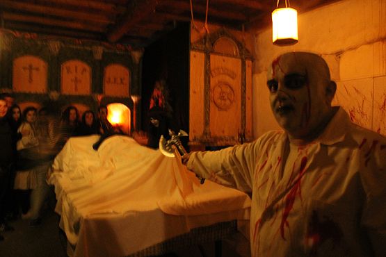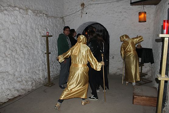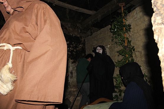 Una parte del pueblo permanece aislado para crear un escenario de 6.000 metros cuadrados, sin alumbrado público, con velas y antorchas, y con múltiples escenarios y decorados en casas, bodegas y callejones. En esta ocasión la recreación ha transportado a este pueblo berciano al siglo XV gracias a la participación de unos 50 actores. Desde un manicomio pasando por una iglesia medieval, cementerio, casas malditas... a lo largo de las 15 escenas montadas van pasando los grupos de 8 personas para realizar el recorrido, lo que permite que cada grupo reciba un actuación personalizada.
