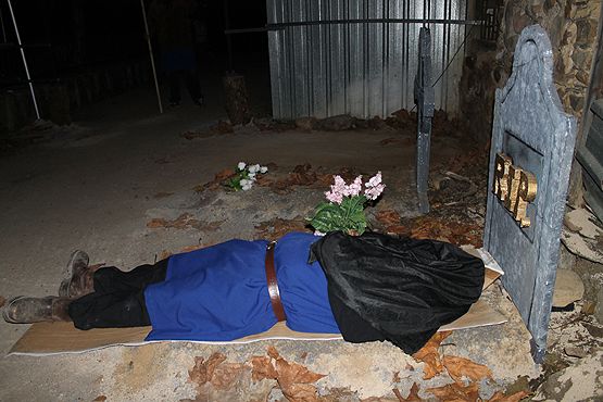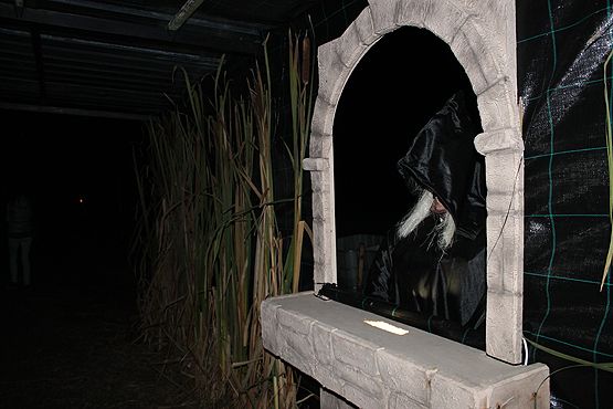 Entrada a la zona de pueblo que está a oscuras para las escenas de terrorMuchos fueron los curiosos y participantes en la tercera edición de una cita que comienza a asentarse como la alternativa 'berciana' a Halloween. Más de 50 actores sumieron a Narayola en una atmósfera fantasmal.