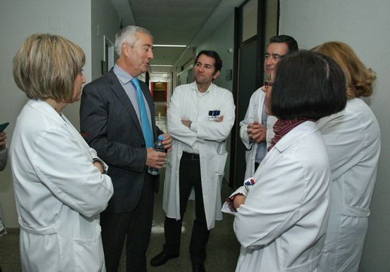 José Antonio Visedo conversa con trabajadores del Hospital del Bierzo en una imagen de archivo