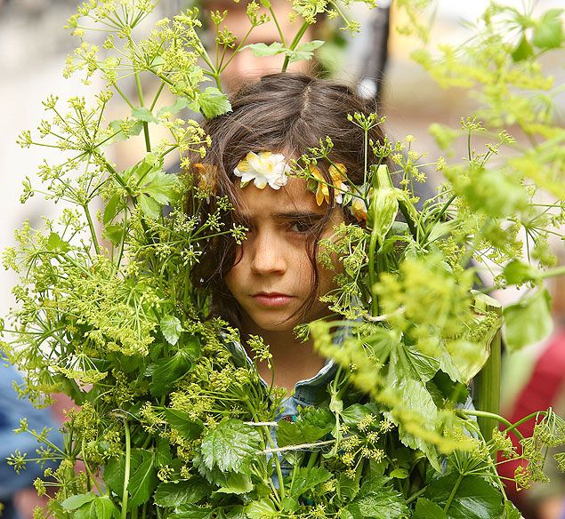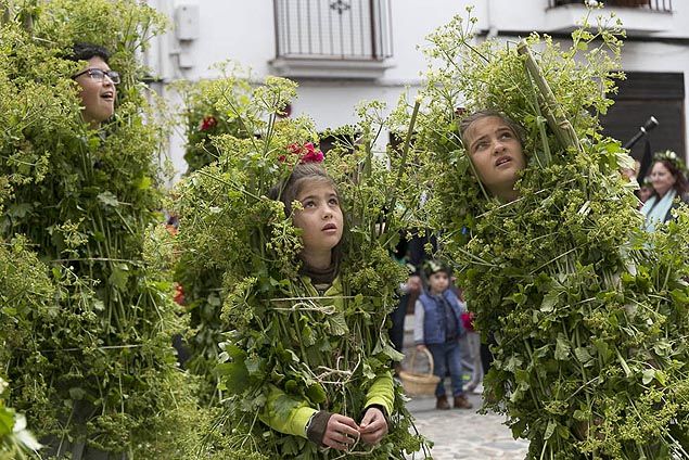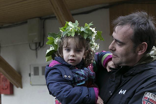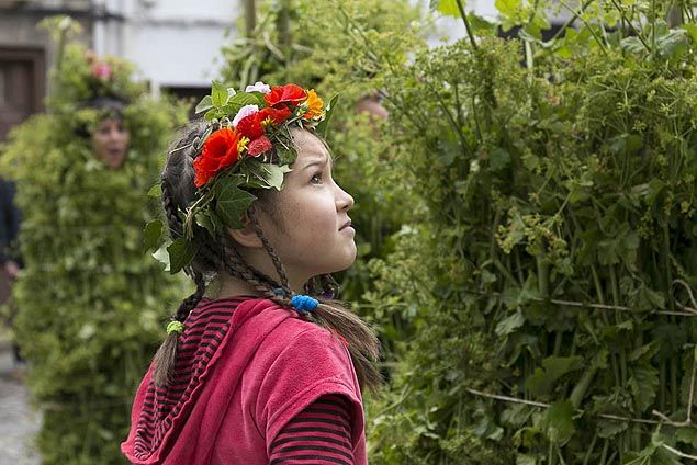 Desde primera hora de la mañana, y partiendo desde Campo da Galiña, As Veigas Altas, Socubo y el barrio de la Cábila, diferentes grupos de pequeños y no tan pequeños, vestidos de 'maios' con 'cañaveiras' y coronas de flores, han desfilado junto a los integrantes de la Escola de gaitas por las calles de la Villa del Burbia. Los 'maios' se han tumbado por las calles para levantarse al ritmo de 'Levántate maio bastante dormiche, pasa un burro e non o sentiche', la popular canción que les acompaña durante este día.
