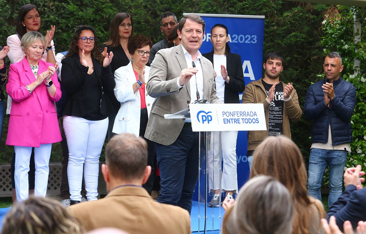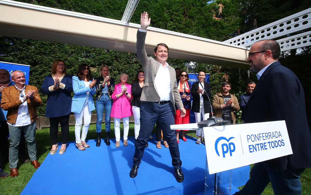 En materia de empleo, Mañueco instó al candidato a “proyectar a Ponferrada hacia el futuro”, mediante proyectos que hagan frente al “cierre precipitado” de las minas y las centrales térmicas. “Vamos a llenar los polígonos industriales de empresas y a hacer que esta comarca vuelva a ser la locomotora de creación de empleo y riqueza”, avanzó el presidente, que se comprometió a “mimar y cuidar” a las empresas “mientras otros las insultan”.