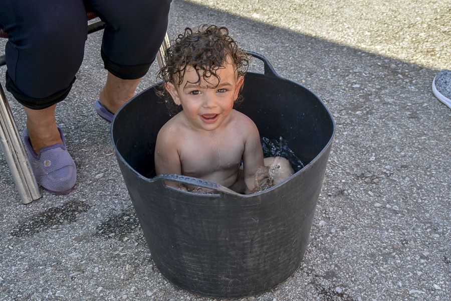Los más pequeños palían el calor con una pequeña piscina que comparten todos.