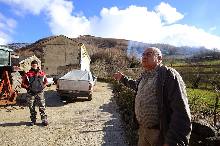 César Sánchez / ICAL José quiroga (D), vecino de la localidad de SuarbolÁlvaro Lombardía, que tiene ahora 66 años, tiene marcada en su memoria la “explosión” que se registró en una de las casas afectadas, en la que se guardaba dinamita para utilizarla en la mina. “Escuchamos una explosión y vimos que la casa de Alonsico había saltado en llamas y había prendido en las casas cercanas. En un par de horas se convirtió todo en ceniza”, lamenta. De ese día, su mayor recuerdo es el del “olor a sarrio y carne quemada”, a causa de los cabritos que quedaron atrapados en la casa en la que se iniciaron las llamas. Luis López, que también era un niño en aquel entonces, recuerda como su padre le obligó a llevarse los terneros al camino de debajo de la iglesia y los bramidos del ganado que bajaba del monte, extrañado por las llamas. “Al volver ya estaba todo destruido. Destacaba el olor a carne quemada”, coincide.
