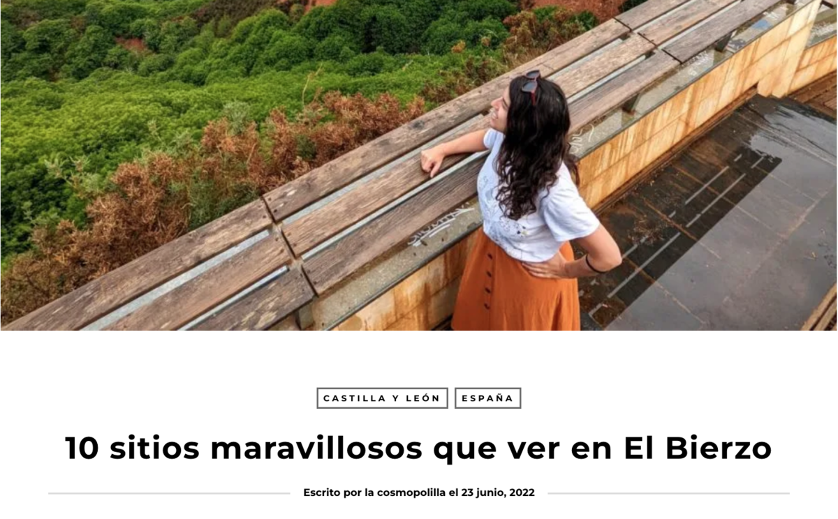 Tras "enamorarse del Bierzo", Rojas decide escribir una entrada en su Blog sobre '10 sitios maravillosos que ver en El Bierzo'. Ponferrada, la Herrería de Compludo, Peñalba de Santiago, Las Médulas, el Castillo de Cornatel, Molinaseca, Villafranca del Bierzo, el Palacio de Canedo, el Monasterio de Santa María de Carracedo y Balboa son los 10 imprescindibles de la cronista en la Comarca.