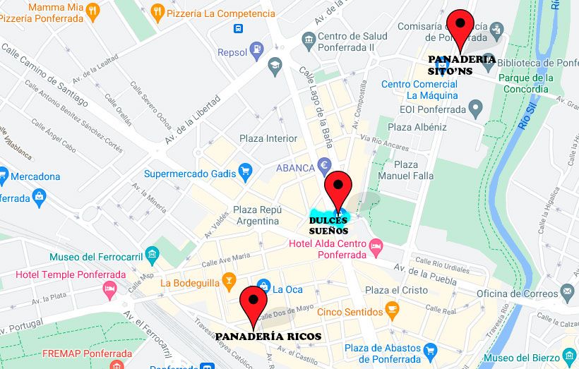ZONA CENTRO DE PONFERRADA : PANADERÍA RICOS, DULCES SUEÑOS, PANADERÍA SITO'NS Y AL PANPAN (AVDA DEL FERROCARRIL)