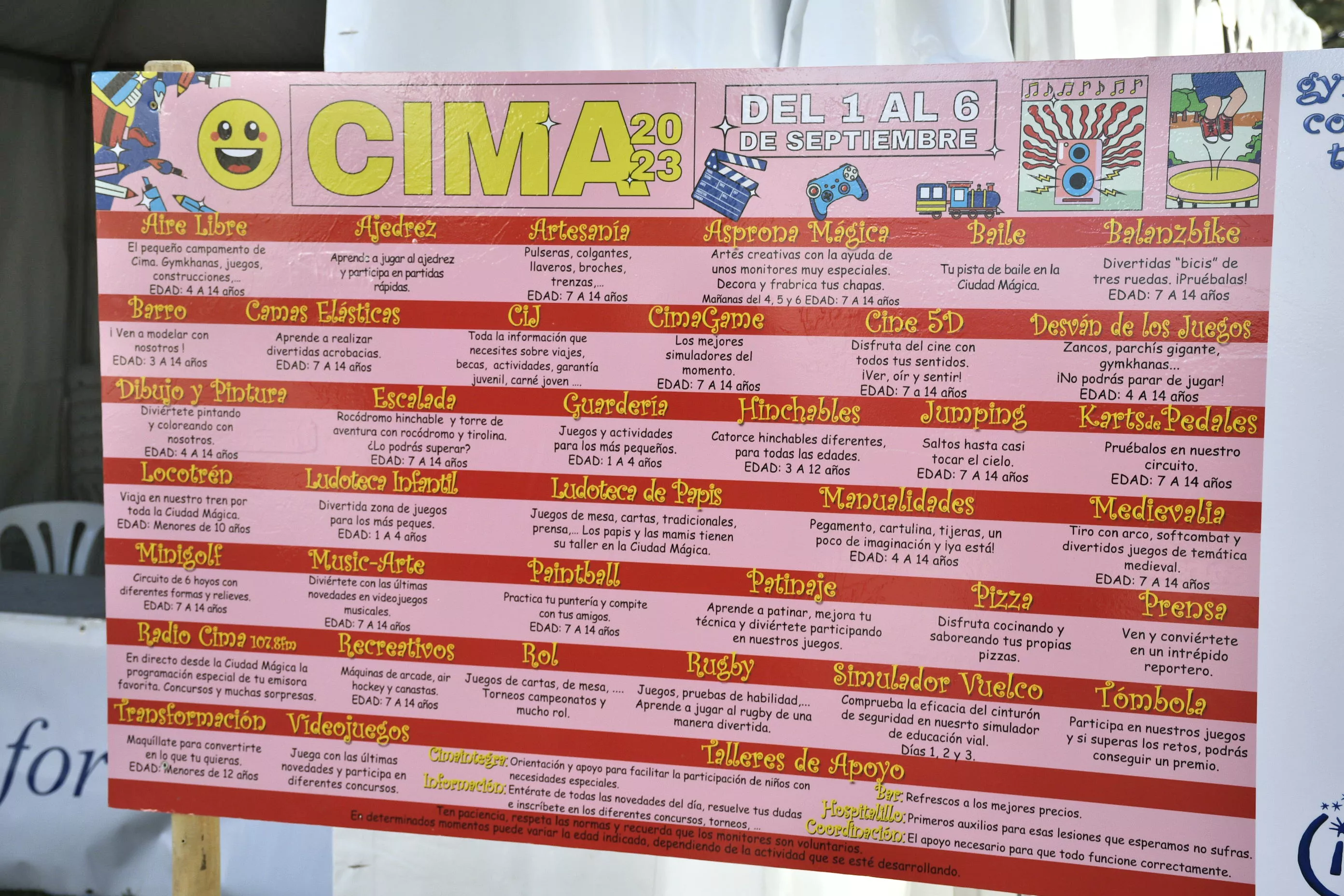 La inauguración ha sido este viernes a las 12:30 horas con el pregón. Sin embargo, los más 'peques' no podrán disfrutar de los talleres hasta las 17:00 horas de ese mismo día y concluirá a las 20:00 horas. Desde el día 2 hasta el 5 de septiembre, el horario será desde las 11:00 horas hasta las 14:00 por la mañana y de 17:00 horas a 20:00 horas por la tarde. Finalmente, el día 6 el horario será de 11:00 horas hasta las 13:00 horas, cuando tendrá lugar el cierre definitivo de CIMA 2023.