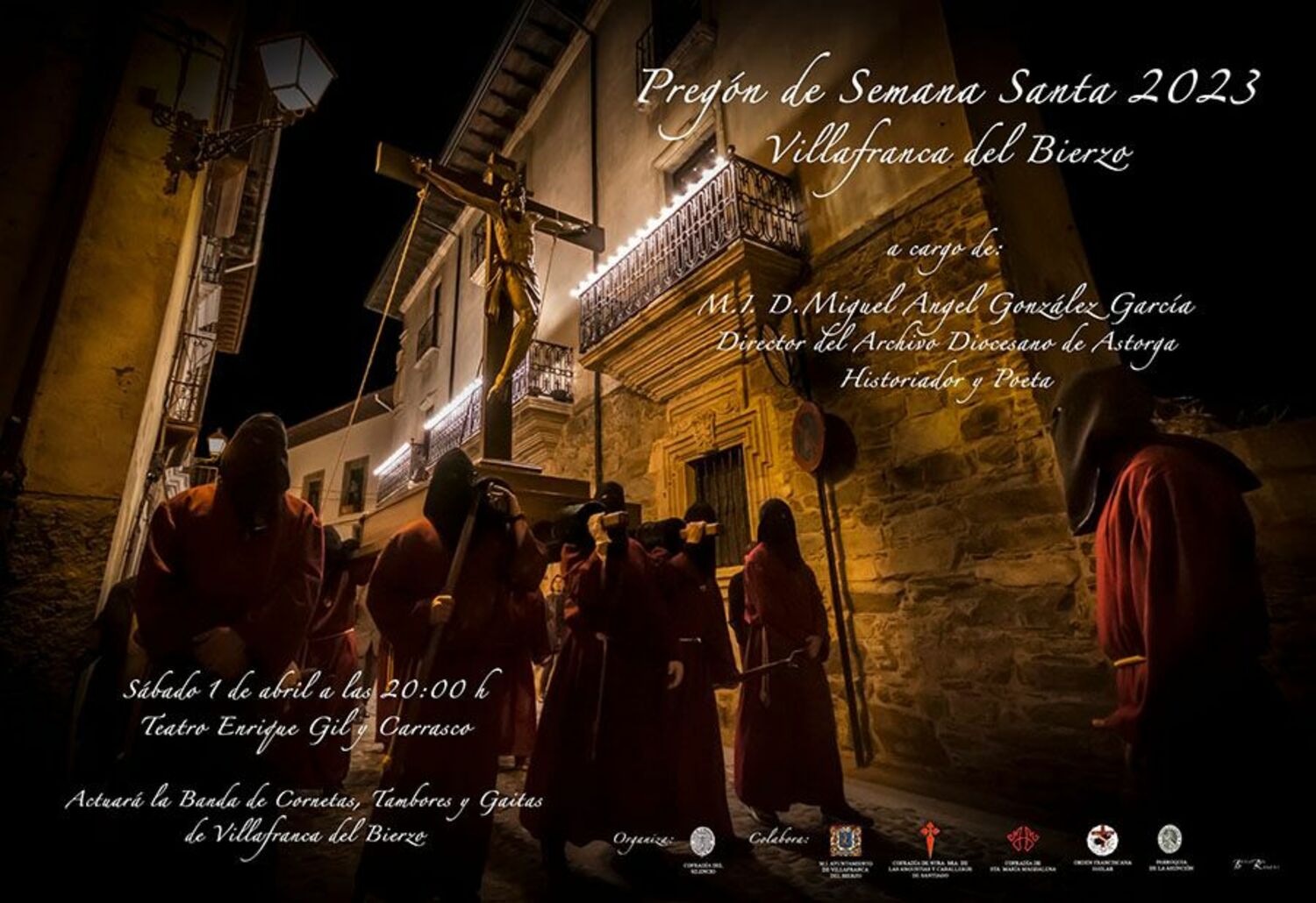 Vuelve la Semana Santa a la Villa del Burbia desde el 1 de abril, cuando a las 20 horas Miguel Ángel González García dará el pistoletazo de salida con el pregón. González, directo del archivo diocesano de Astorga, historiador, poeta y escritor, ha sido el escogido para dar inicio en el Teatro Gil y Carrasco a esta celebración tan importante en Villafranca acompañado de la Banda de Cornetas, Tambores y Gaitas.