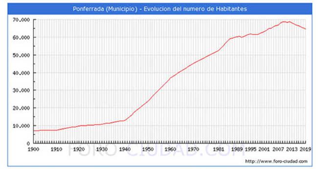 Gráfico evolución poblacional Ponferrada / Foro Ciudad