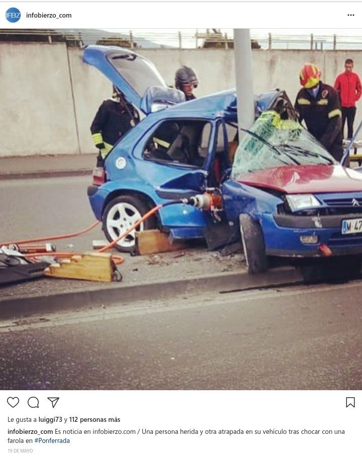Una persona herida y otra atrapada en su vehículo tras chocar con una farola en Ponferrada