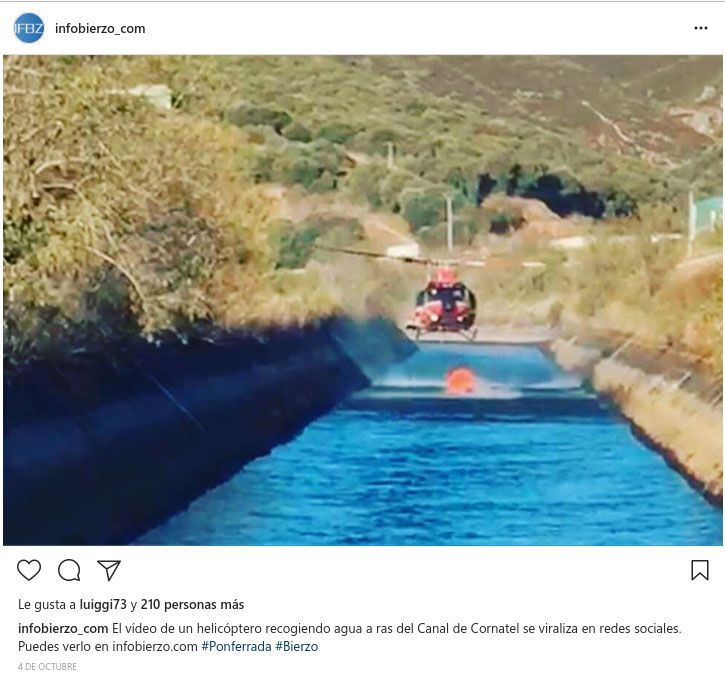 El vídeo de un helicóptero recogiendo agua a ras del Canal de Cornatel se viraliza en redes sociales