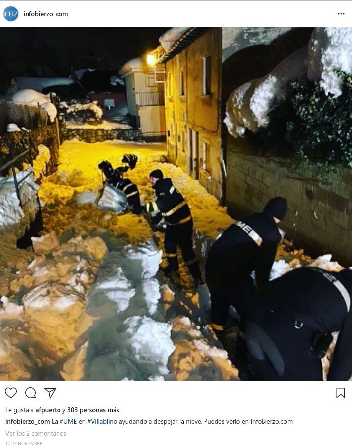 La UME acude a limpiar la nieve en Villablino por el riesgo que supone la falta de electricidad