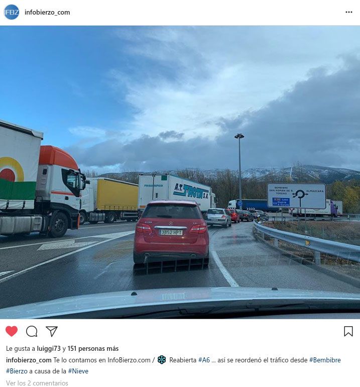 Así fue el desvío de tráfico en Bembibre a causa del corte de la A-6 por la nieve