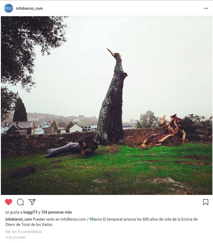 El temporal arranca los 600 años de vida del ‘Xardón del Perouchín’ de Toral de los Vados