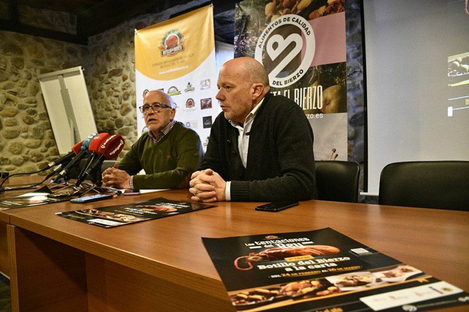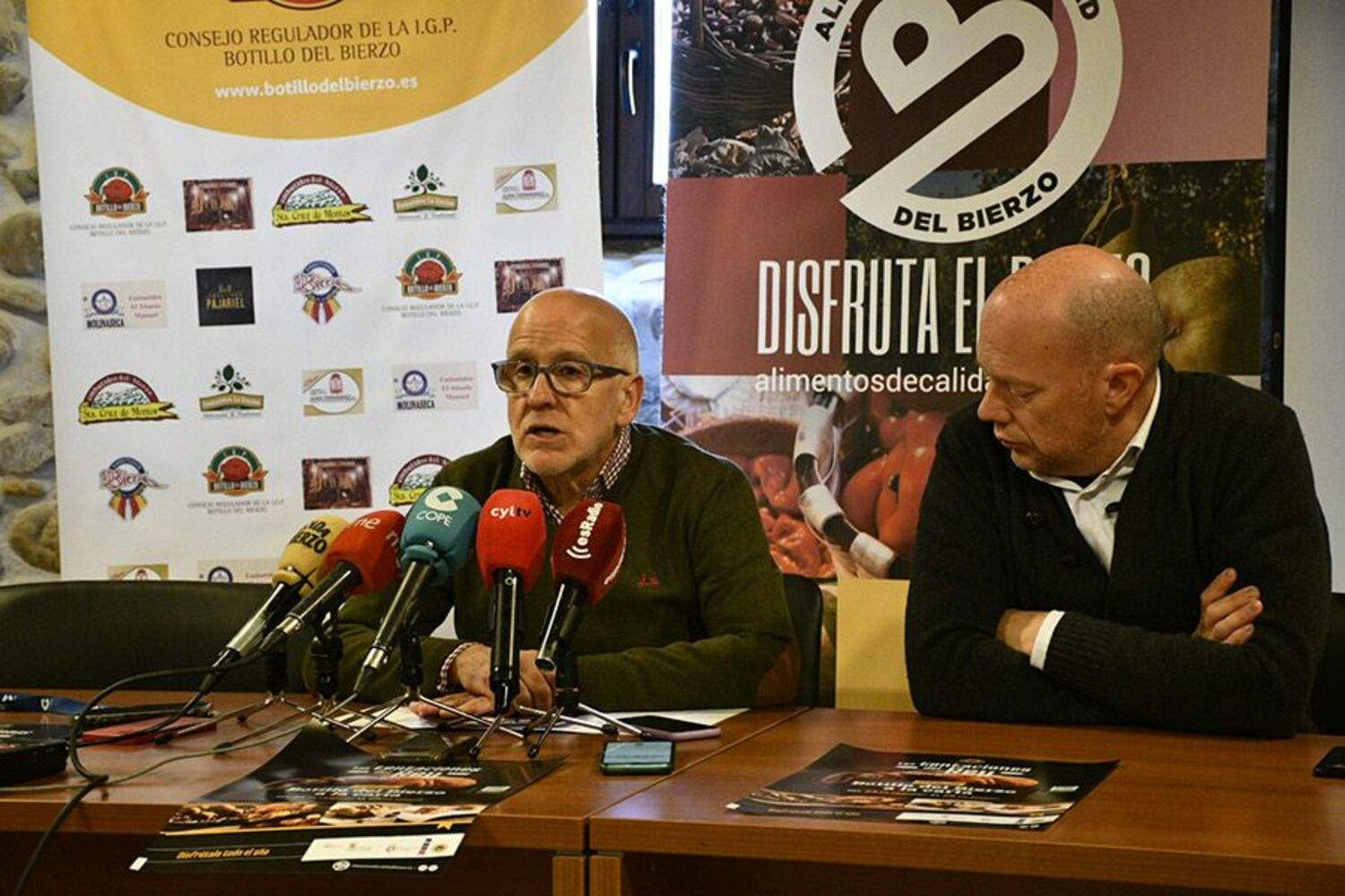 Foto: El presidente del Consejo Regulador de la IGP Botillo del Bierzo, Óscar Ramos (I), junto al director técnico, Pablo Linares (D), durante la presentación de la séptima edición de las jornadas ‘Las tentaciones del rey’ / Foto: Dani Merino / InfoBierzo