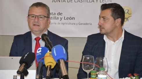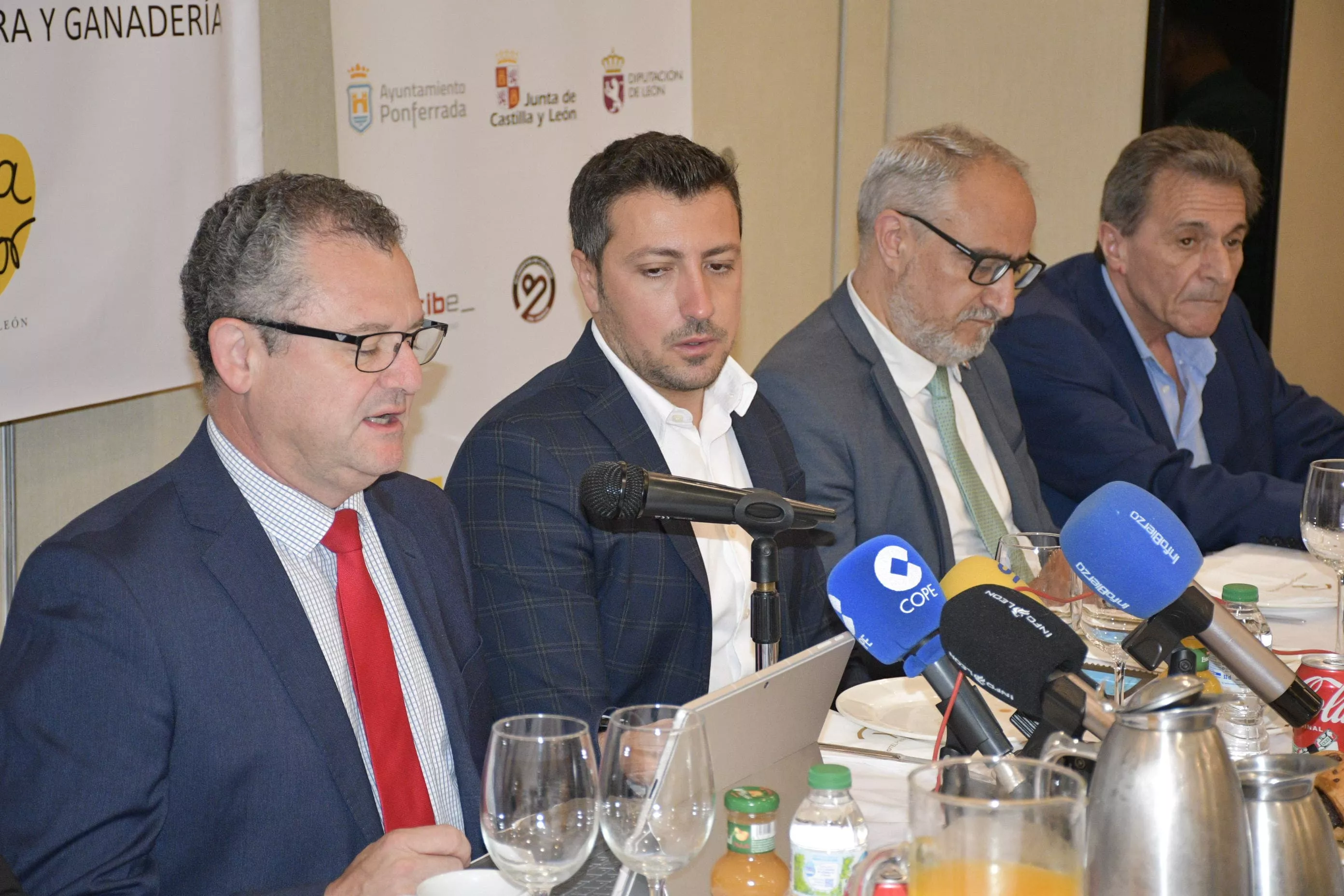 El consejero identificó varios facturas que suponen un reto de futuro para la actividad del sector primario en El Bierzo y provincia de León. En primer luger la falta de relevo generacional -herramientas de protección al productor como los sistemas antiheladas que ha comprometido la Junta se exponen como incentivo- el caracter minifundista de los terrenos que se reordenan con las concentraciones parcelarias (en marcha en Castropodame y en licitación la del Bierzo Central que afecta a 2.300 hectáreas y 4.800 propietarios en los municipios de Ponferrada, Camponaraya y Carracedelo) y también la sequía, que afecta al cereal y motiva el abandono de una referencia a nivel nacional, como el lúpulo.