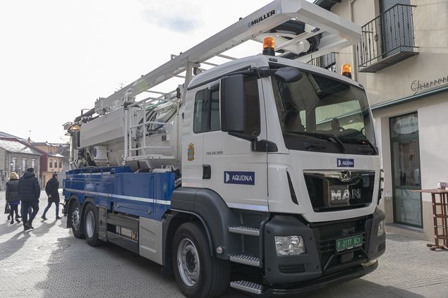 Ponferrada estrena un nuevo camión de limpieza del alcantarillado para un mayor rendimiento y protección del medio ambiente. La adquisición de este vehículo, con cargo al fondo de amortización del contrato de suministro de agua y alcantarillado, supone una inversión de 450.000 euros. "El camión es lo más moderno que hay en el mercado internacional, no se hacen en España, y supone un salto importante en la calidad del servicio y la protección del medio ambiente", destacó durante su presentación el director de Aquona, Jesús Gacía del Valle, que explicó que tendrá un mayor rendimiento con un avanzado sistema de recirculación y reciclaje interno gracias al cuál se ahorrará una importante cantidad de agua -entre 12.000 y 15.000 litros diarios-.