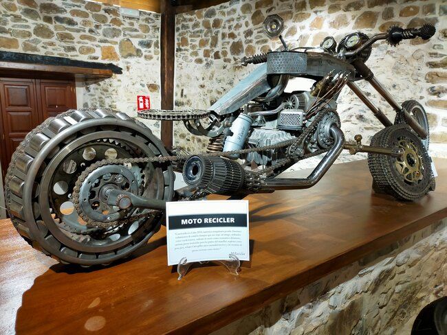 La exposición “Un paseo por el arte del reciclaje” se puede visitar en la sala de Exposiciones del edificio de la oficina de turismo de Molinaseca, con piezas de Miguel Rodríguez M.RECICLER, conocido como el rey del reciclaje motero. La exposición cuenta con unas 70 piezas y se podrá visitar hasta el 25 de julio, la entrada es libre y gratuita.