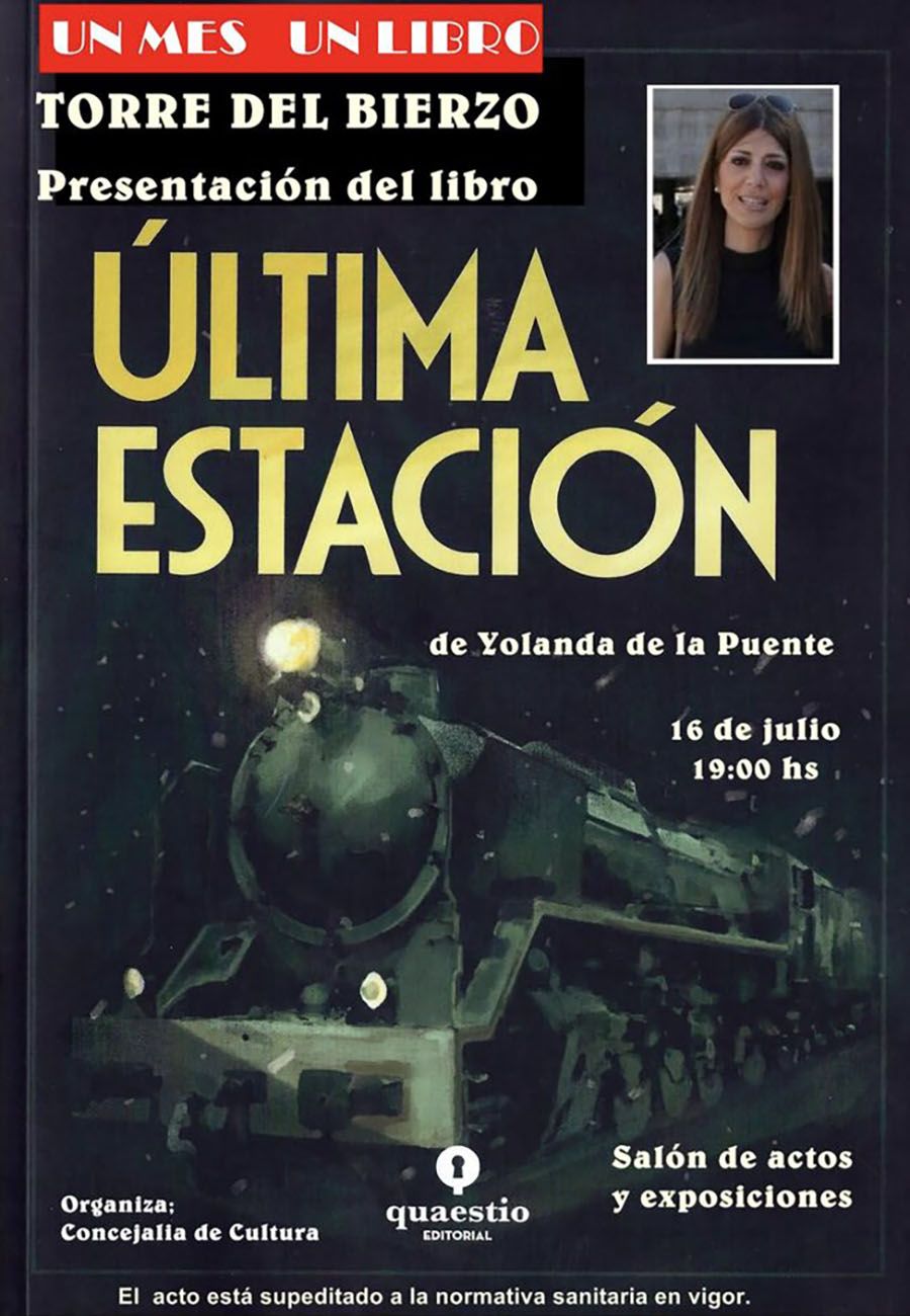 Yolanda de la Puente presentará su obra "La última estación" este viernes a las 19:00 horas, en el Salón de actos y Exposiciones de Torre del Bierzo, junto con la poeta y crítica literaria Nuria Viuda. La novela "La última estación" transcurre en el tren Correo-expreso n.º 421 que culmina con el trágico accidente ferroviario ocurrido en el Túnel 20 de Torre del Bierzo. Ambientada en los grises años de la posguerra, la autora va describiendo los sentimientos, frustraciones, decepciones, deseos, ilusiones... de los protagonistas de la novela marcados, todos ellos, por el fatídico acontecimiento ocurrido el 3 de enero de 1944.
