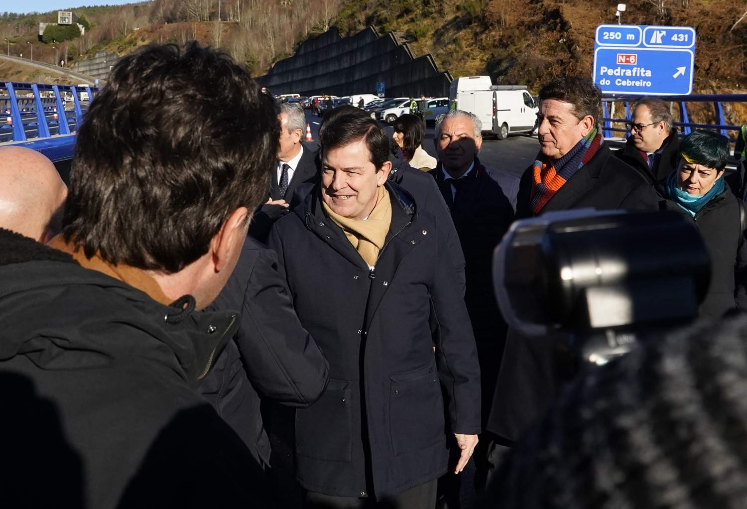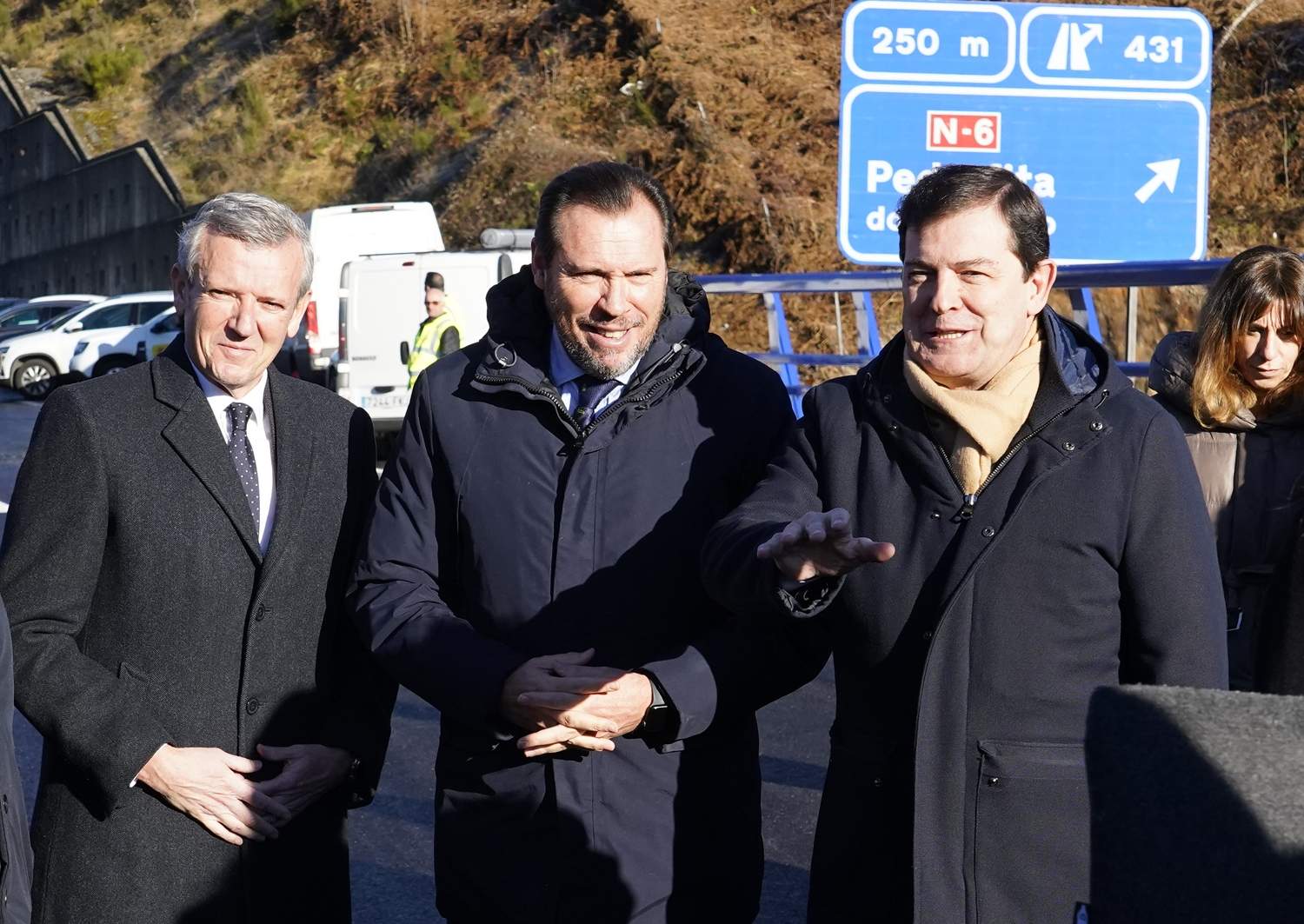 Puente recordó que hace un año viajó a este mismo lugar para proceder a la apertura de uno de los carriles sentido Madrid y ahora cumple su compromiso de recuperar la normalidad plena en la conexión de Galicia y Castilla y León con la normalización del tráfico en la A-6. “Hace un año nos encontrábamos en el viaducto de enfrente, dábamos el primer paso de un proyecto sin precedentes y a partir de hoy vuelve a la plena normalidad. Alguien me ha reprochado el atrevimiento de inaugurar de nuevo, como si nosotros tuviéramos que que pedir perdón por la mala ejecución de las anteriores infraestructuras o su colapso”, remarcó y añadió que la obra original tardó tres años y medio en ejecutarse, “y sin embargo esta tiene muchas más garantías de seguridad”.