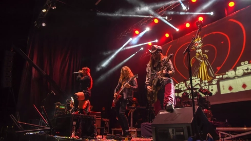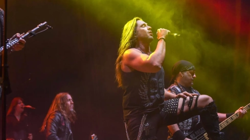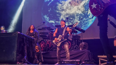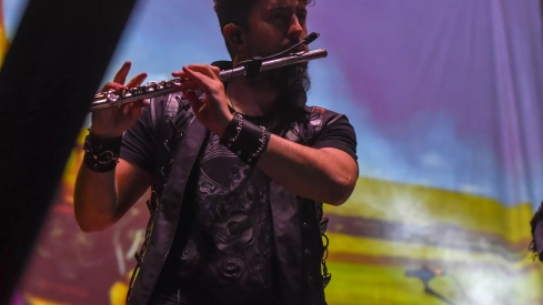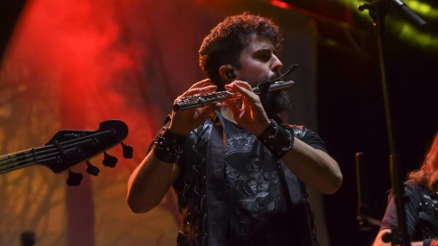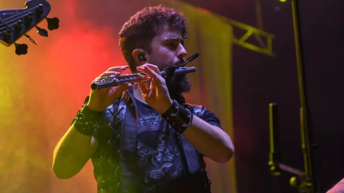 Rafa Blas, lejos de enfriarse, retomó el concierto exactamente donde lo dejó, con la frase final de “La venganza de Gaia” y, con ironía, dijo: “a ver si esto va a ser cosa de los Kabrones” (el grupo fundado por ex componentes de Mago de Oz).