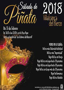 Villafranca del Bierzo vivirá el Sábado de Piñata el 17 de febrero, en la Plaza Mayor entre las 18.30 y las 22.00 horas con la actuación de 'Los Ciclones del Becerril'. Habrá premios en las siguientes categorías: disfraz más elaborado individual, disfraz más improvisado, mejor disfraz en pareja, mejor disfraz en grupo hasta 10 personas, mejor disfraz en grupo hasta 20 personas, mejor disfraz en grupo más de 20 personas, mejor performance y mejor disfraz absoluto.Cubillos del Sil