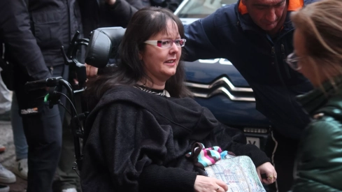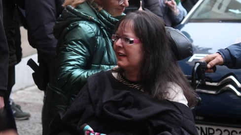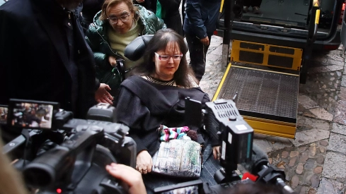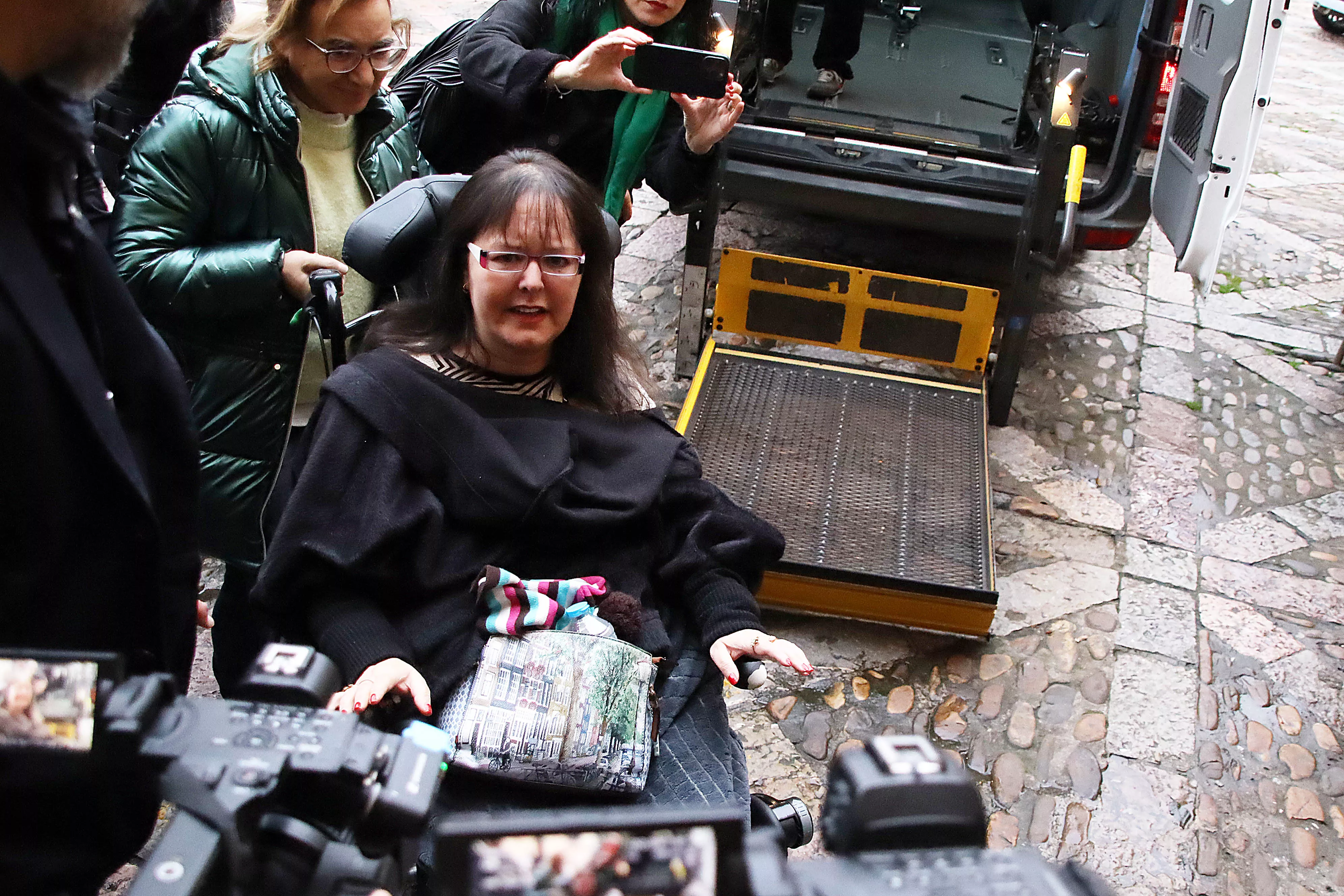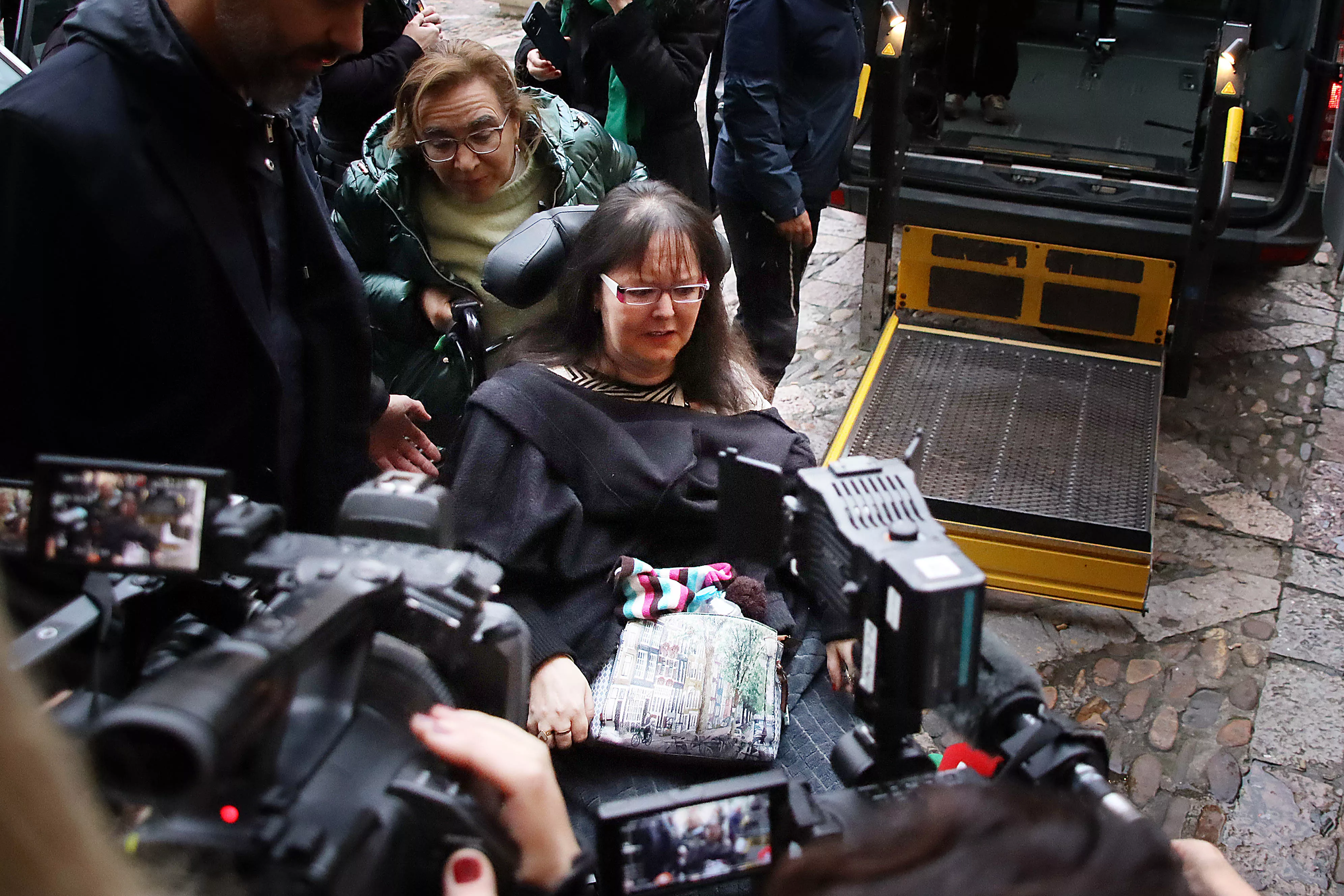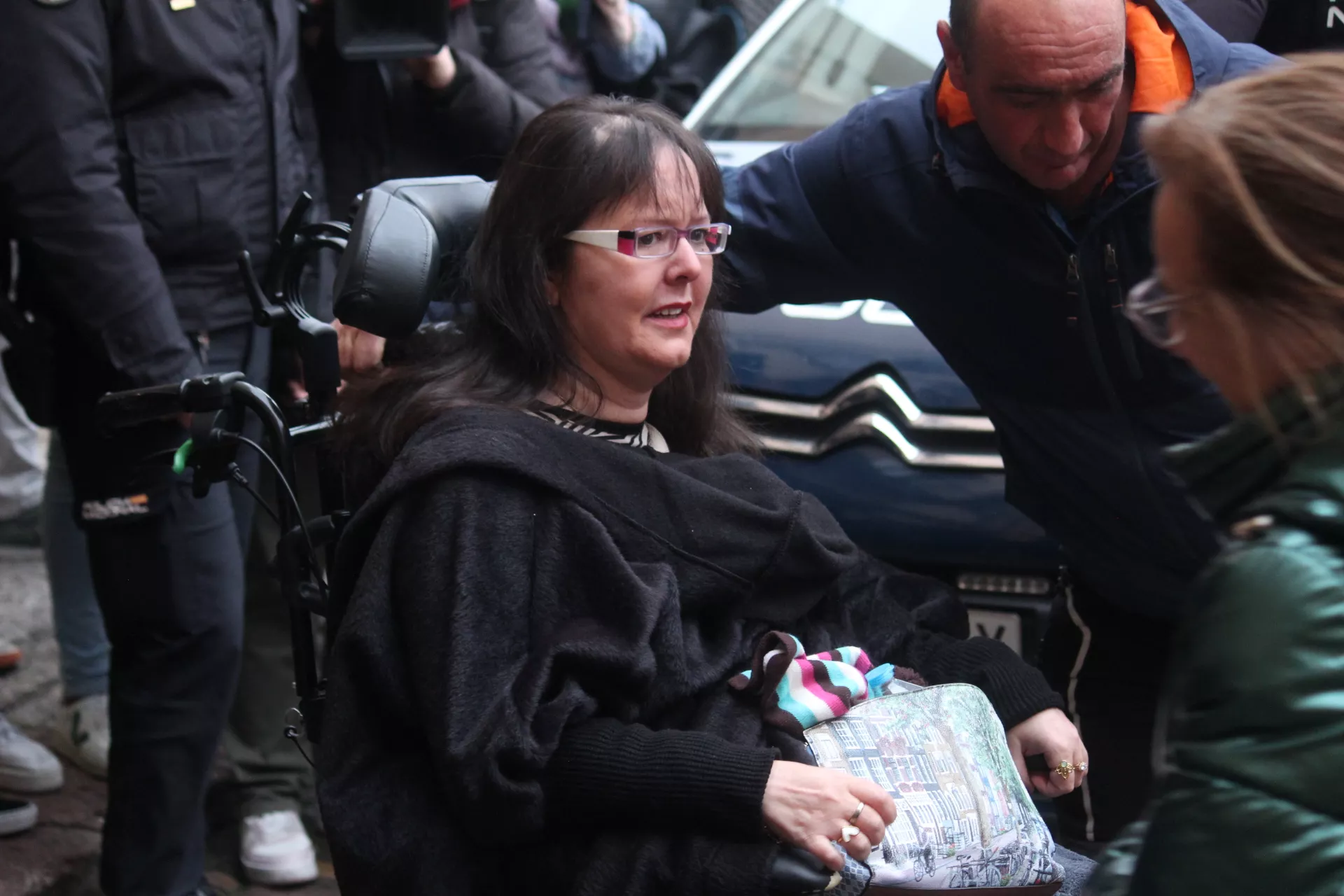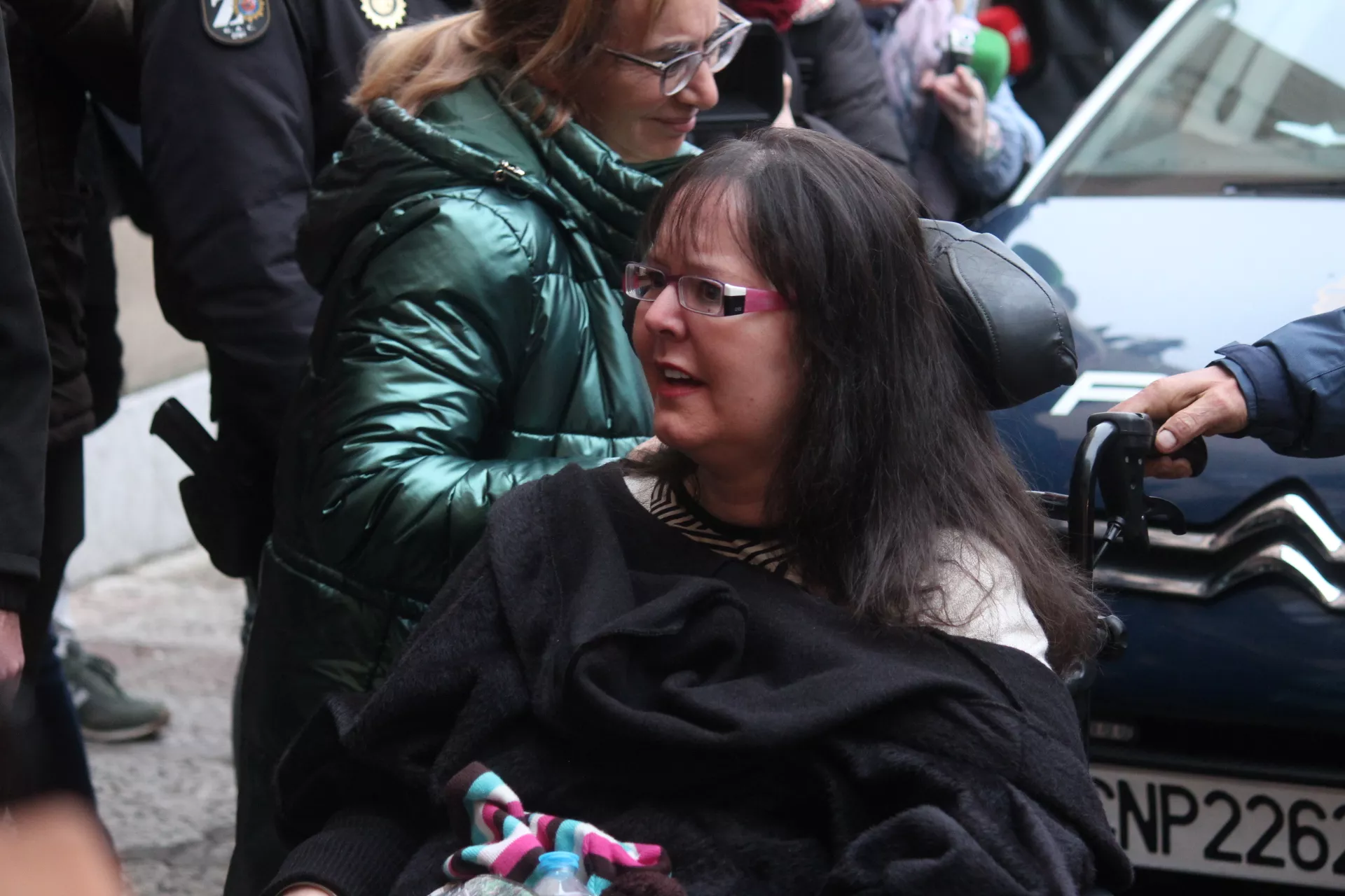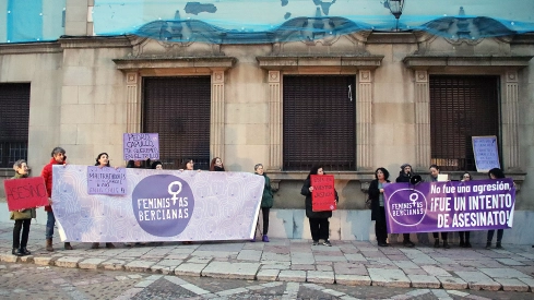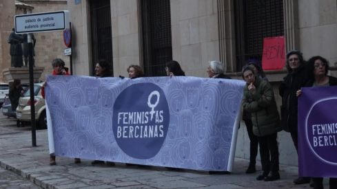 Dentro de ella iba la víctima, Raquel Díaz, que declarará en calidad de testigo tras la intervención de su expareja en calidad de acusado. Mientras un acompañante ayudaba a Díaz a abandonar el vehículo en la silla de ruedas en la que está postrada desde los hechos ocurridos en mayo de 2020, las Feministas Bercianas le mostraban su apoyo con cánticos como “Raquel, guerrera, aquí está tu trinchera”, “Si tocan a una, nos tocan a todas” o “No queremos cuentos, queremos justicia”.
