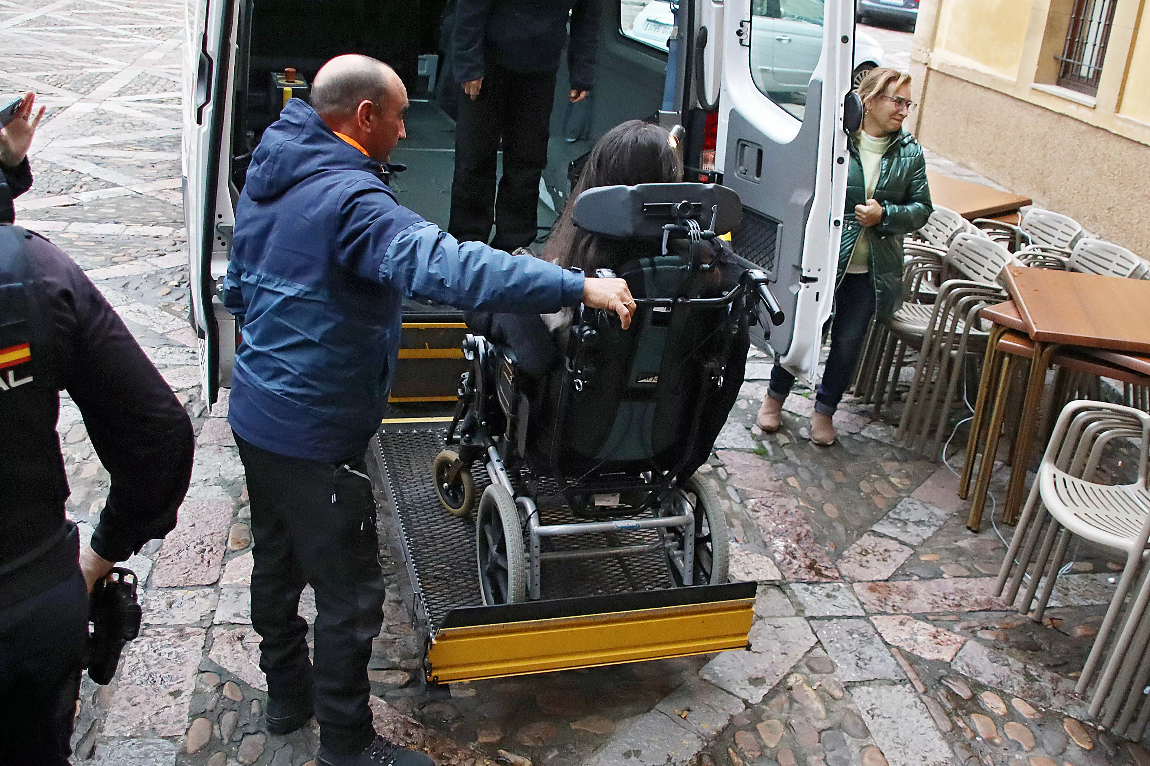 Aproximadamente una hora después, una furgoneta del Centro de Referencia Estatal Discapacidad y Dependencia de San Andrés del Rabanedo hizo su entrada en la plaza de San Isidoro de la capital leonesa.