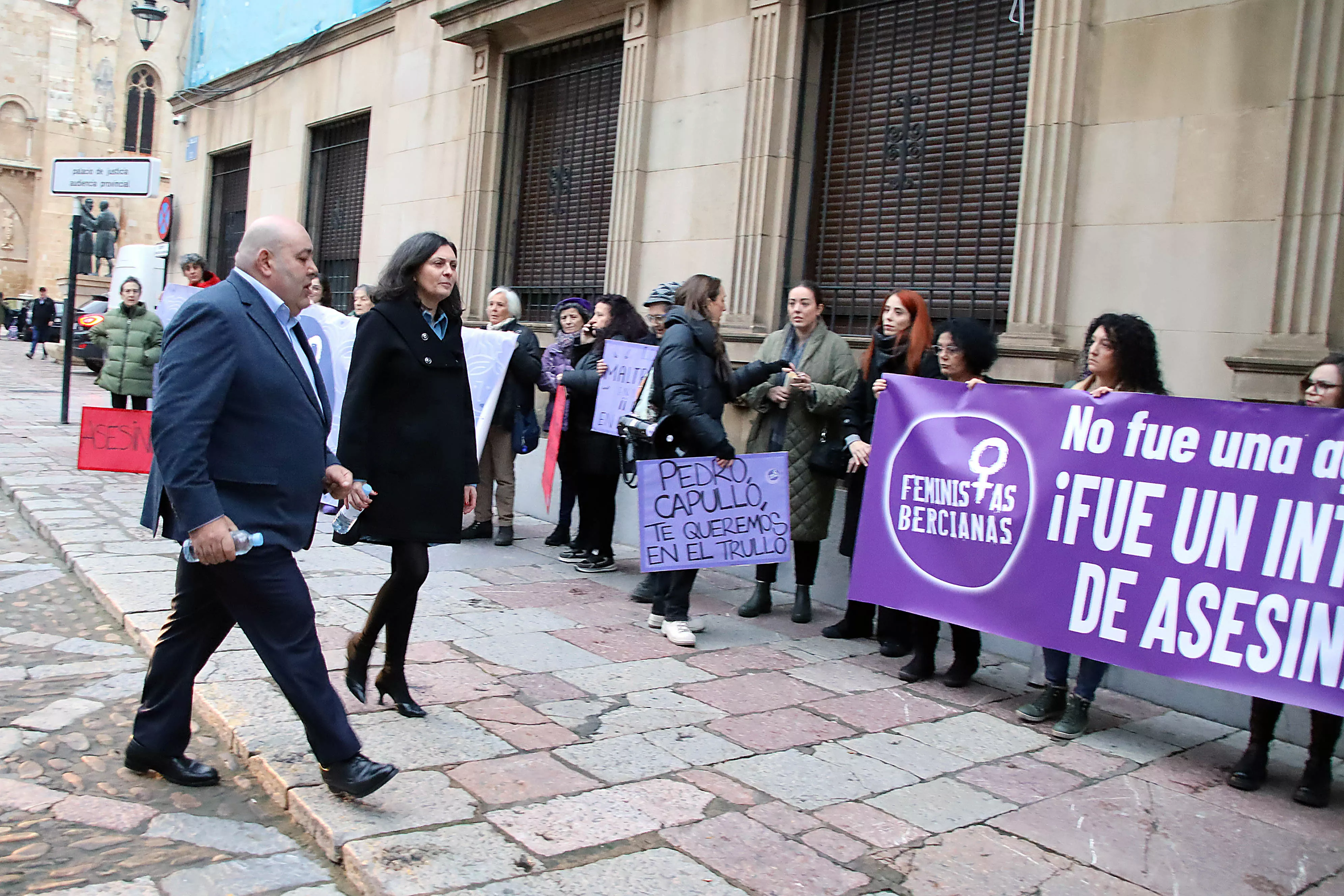 Minutos después de la llegada del acusado a la Audiencia, pasadas las 8.30 horas de este lunes, las Feministas Bercianas procedieron a la lectura de un manifiesto en que recordaron en primer lugar que “el caso de Pedro Muñoz está repleto de zancadillas a su víctima, Raquel Díaz, anclada para siempre a una silla de ruedas y a las terribles secuelas del maltrato constante al que vivió sometida durante toda su relación”.