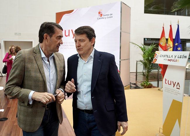 Miriam Chacón / ICAL. El presidente de la Junta de Castilla y León, Alfonso Fernández Mañueco, participa en el acto de presentación del Plan de Vivienda Joven de Castilla y León ‘TUYA’.La Junta de Castilla y León tratará de eliminar la barrera económica que supone el pago de la entrada a una vivienda libre por parte de los jóvenes, con una línea de avales que cubra hasta el 17,5 por ciento del valor de tasación de la casa. De esta manera, los menores de 36 años que quieran comprar una vivienda inferior a 240.000 euros con una hipoteca solo tendrán que hacer frente inicialmente al 2,5% del préstamo. Por lo tanto, el préstamo hipotecario puede pasar del 80 al 97,5 por ciento de la vivienda, por lo que los jóvenes necesitarán de menos ahorros para comprar una casa.