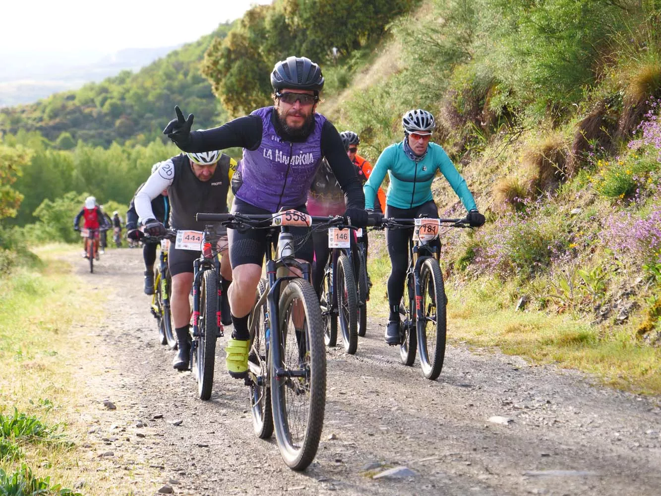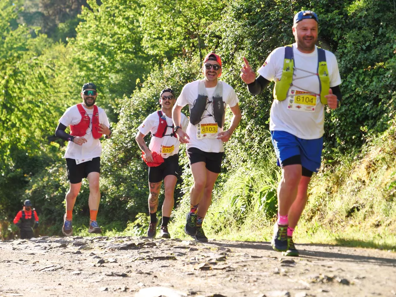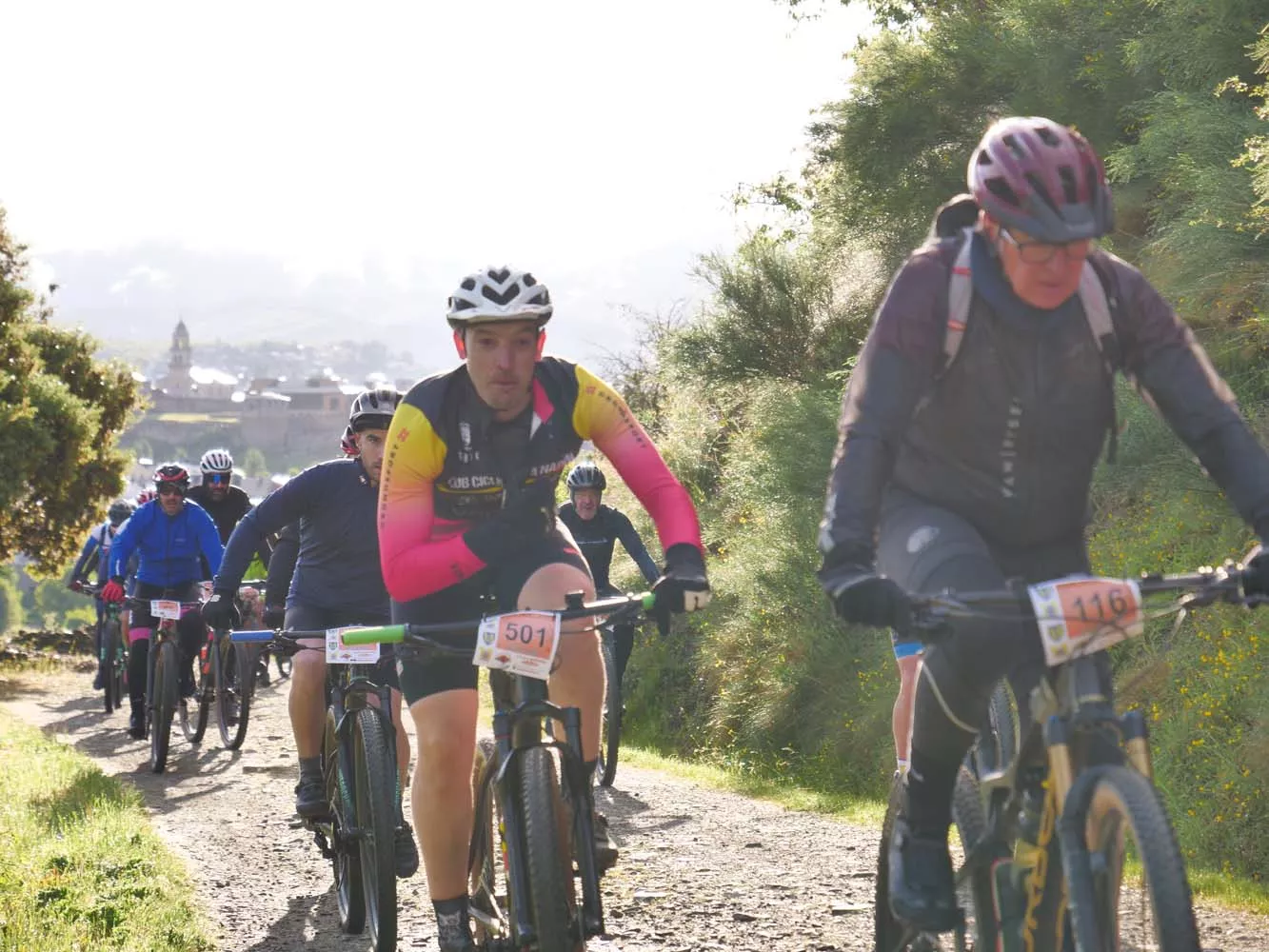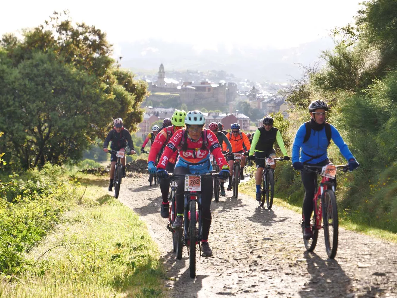 Tras la salida desde Ponferrada, ciclistas, corredores y andarines llegan a los primeros repechos del Pajariel en los 101 KM Peregrinos, que este sábado congrega a más de un millar de deportistas para esta mítica prueba berciana.