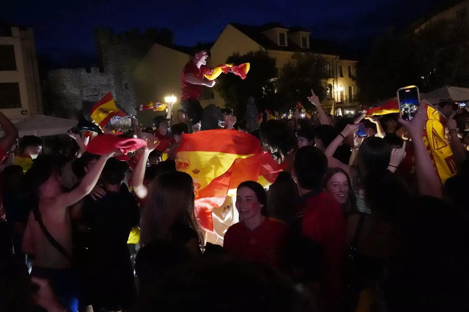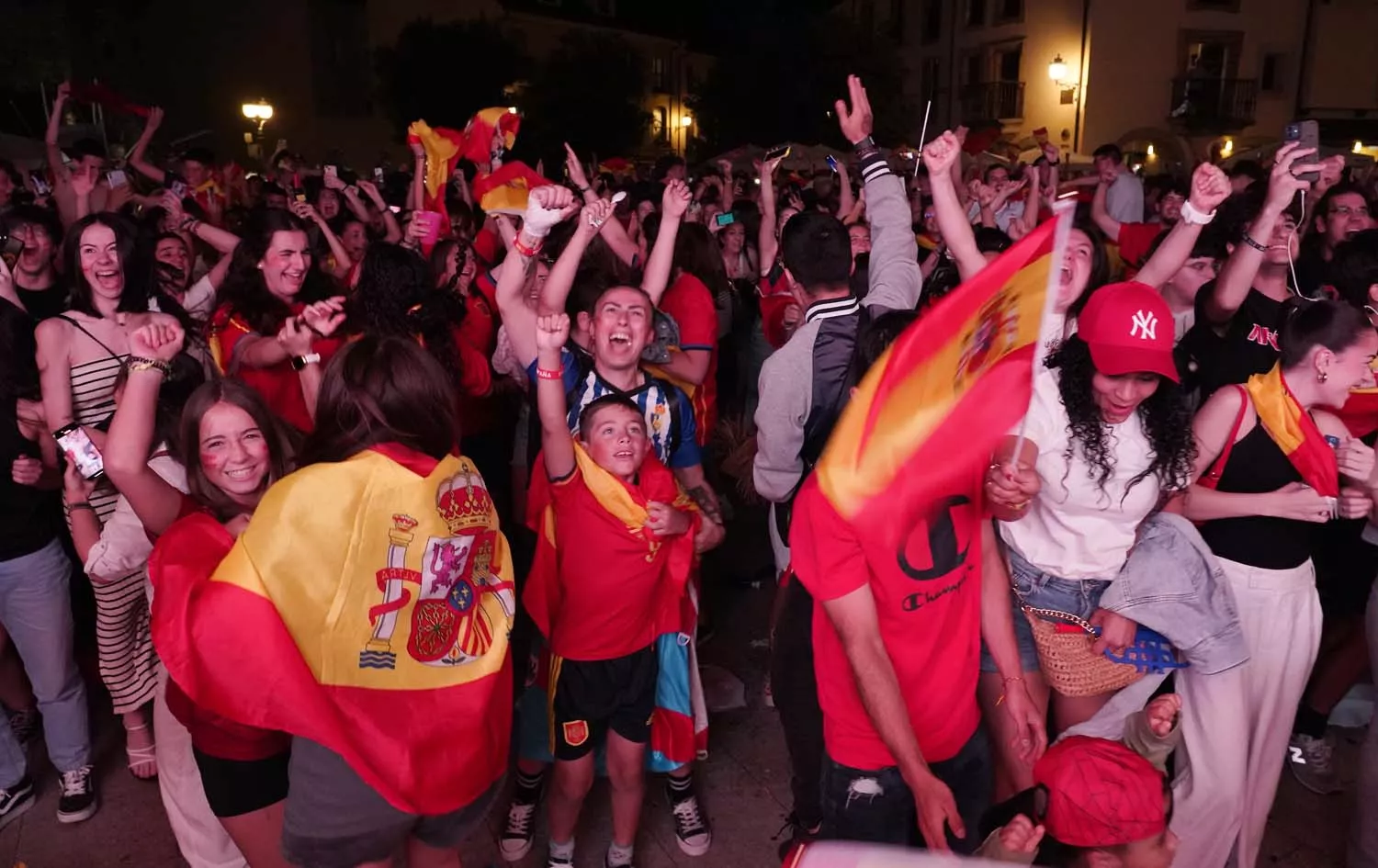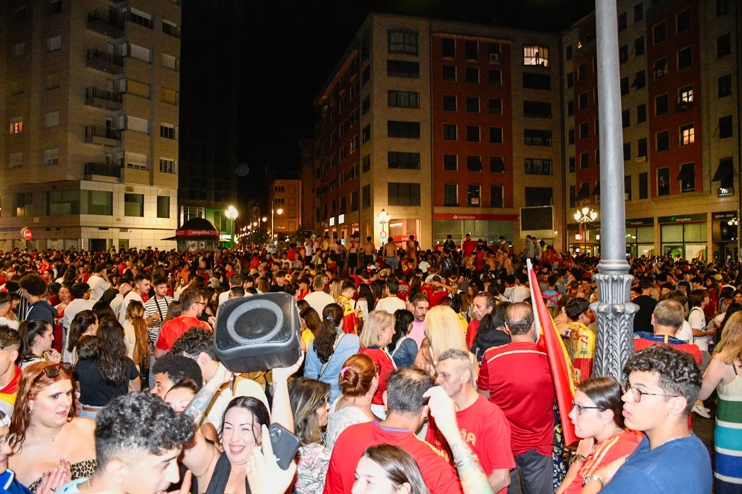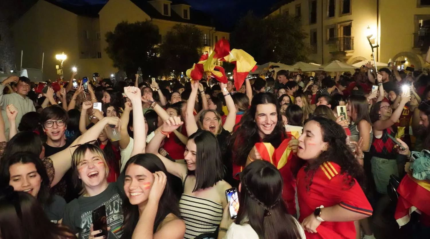 Cientos de aficionados se desplazaron, desde la Plaza de La Encina de Ponferrada donde pudieron seguir la final de la Eurocopa entre la Selección Española y la Inglesa, hasta la Plaza de Lazúrtegui en la que pudieron celebrar el triunfo español en Europa.