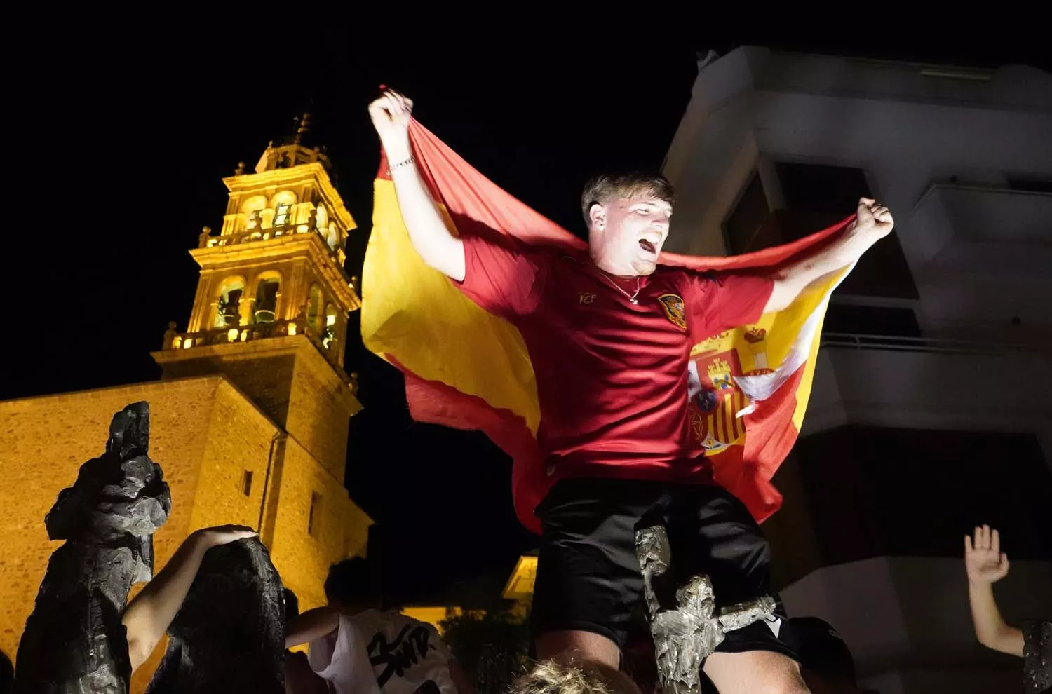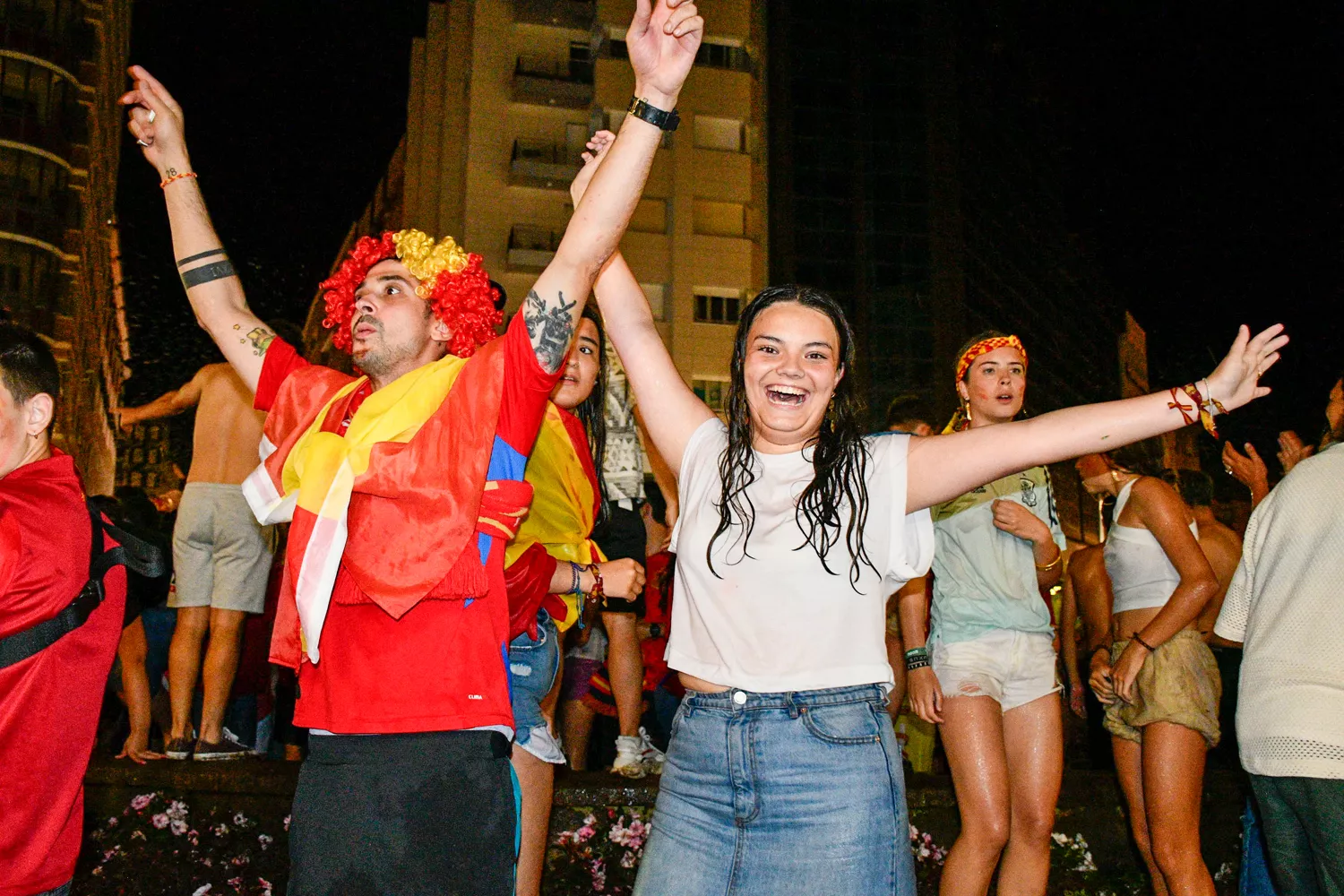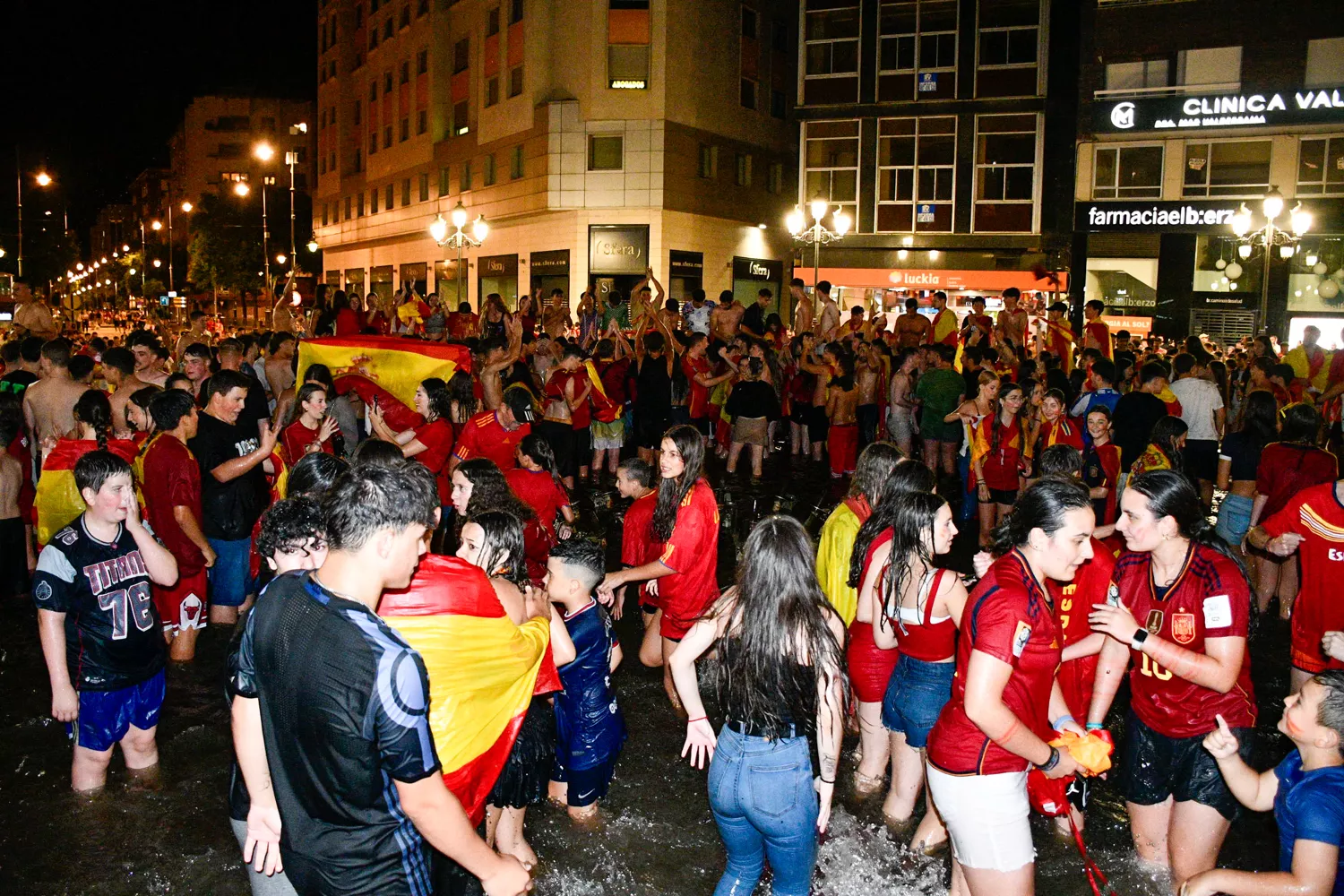 De este modo, la Plaza de Lazúrtegui ha sido ido el escenario de una gran celebración tras el pitido que marcaba el final a la Eurocopa 2024. Y es que el calor y el buen tiempo que ha acompañado toda la jornada del domingo, y que se ha extendido hasta la noche, ha sido el último empujón que necesitaban muchos para terminar de refrescarse en la mítica fuente en el centro de la capital berciana, escenario de momentos victoriosos en múltiples ocasiones.