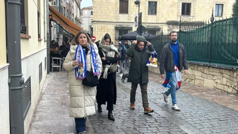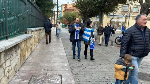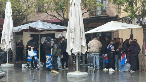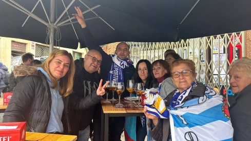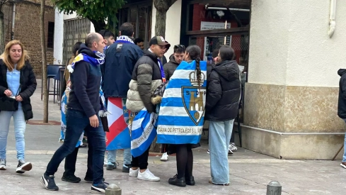 Con banderas, equipación y sobre todo mucha ilusión y ganas los aficionados de la Ponfe han puesto de blaquiazul las calles.