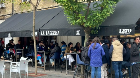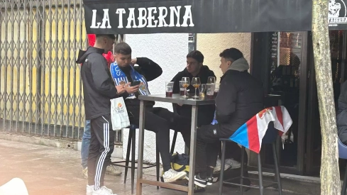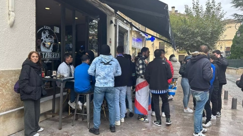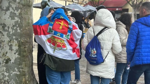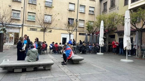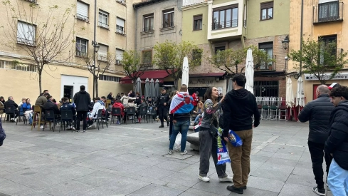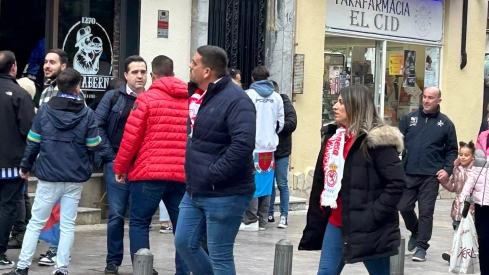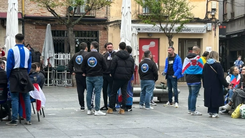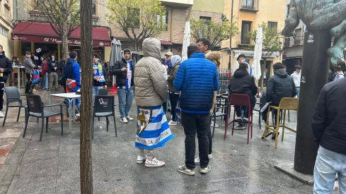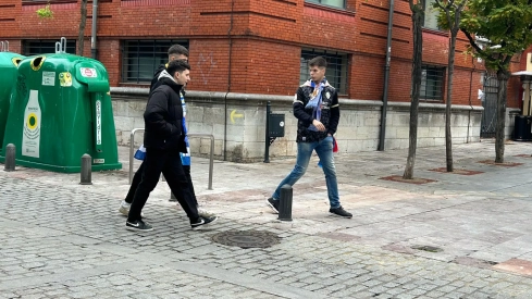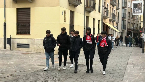 Los aficionados de la Ponferradina recorrían las calles del centro de León y su punto de encuentro el Parque del Cid coreando cánticos y calentando en los bares de la ciudad de cara al derbi que comenzará esta tarde.