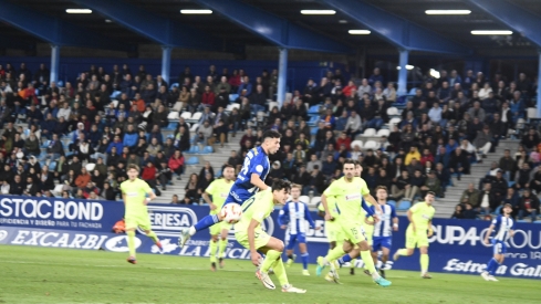 Goool de la Deportiva. Centro medido de Álvaro que remata Bustos en escorzo para empatar.