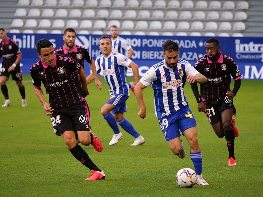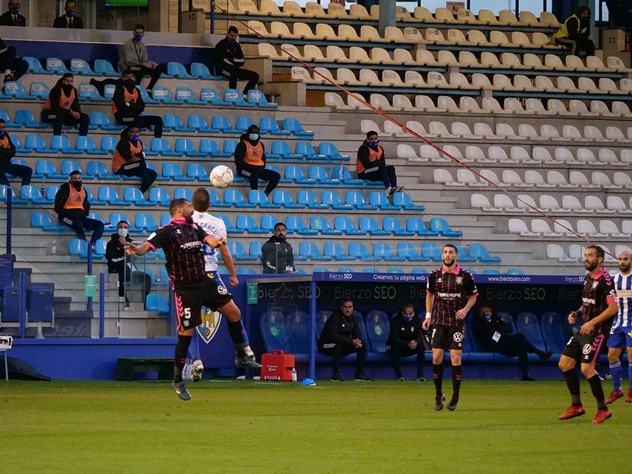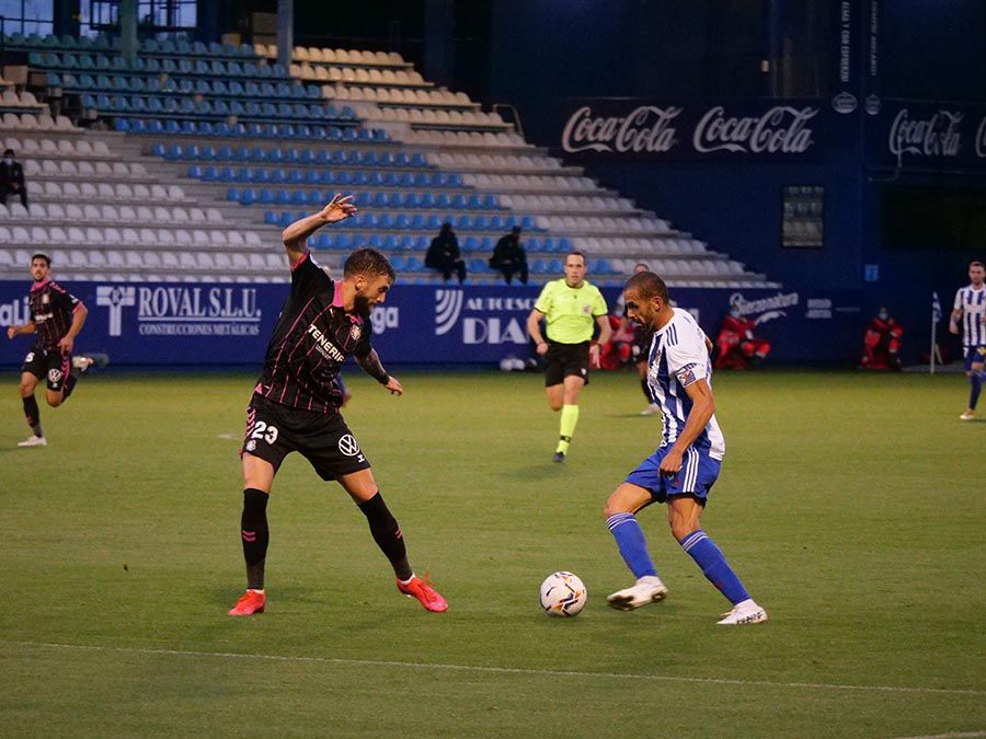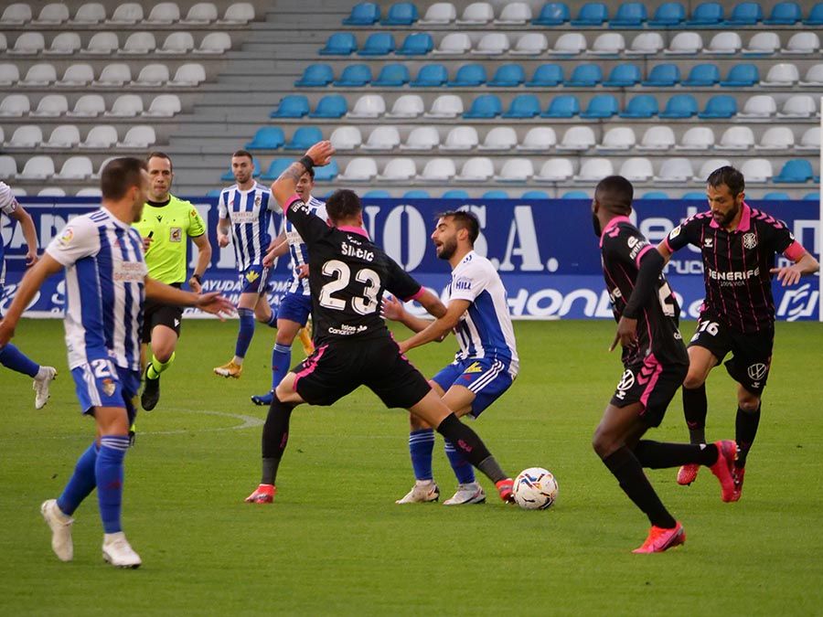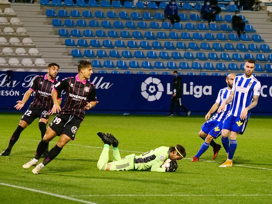 D. Tenerife, 0: Ortolá; Moore, Sipcic, Alberto, Pomares; Zarfino, Aitor Sanz, Folch; Bermejo, Fran Sol y Jacobo. -Entrenador: Fran Fernández.
