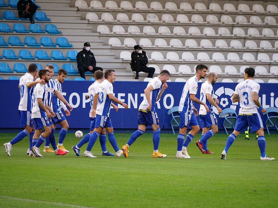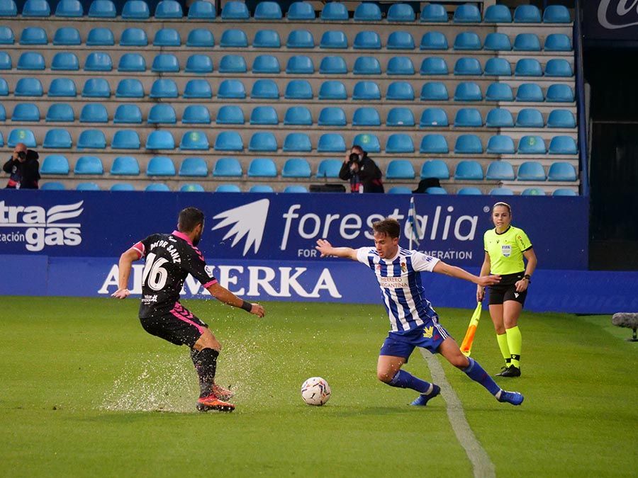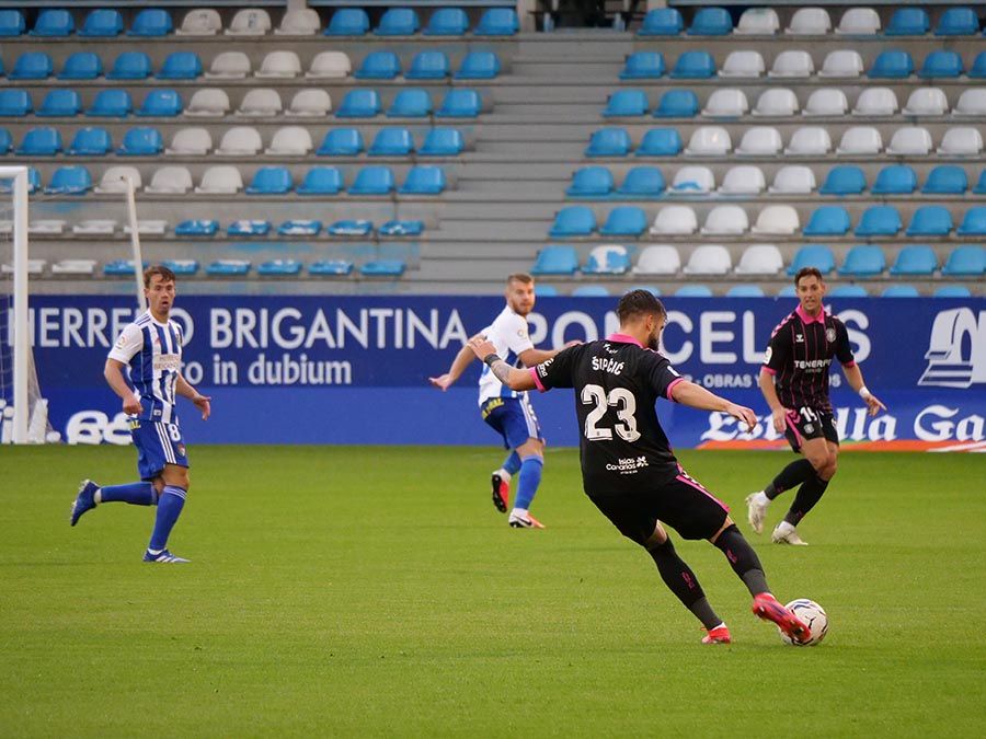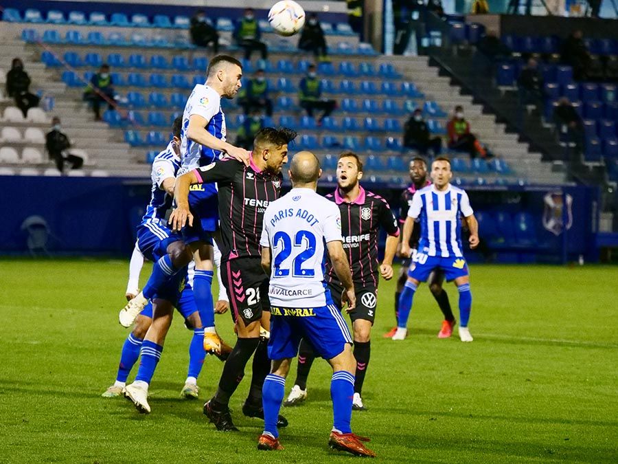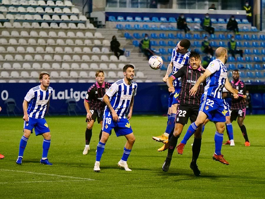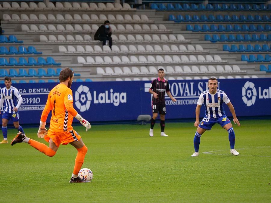 D. Tenerife, 0: Ortolá; Moore, Sipcic, Alberto, Pomares; Zarfino, Aitor Sanz, Folch; Bermejo, Fran Sol y Jacobo. -Entrenador: Fran Fernández.