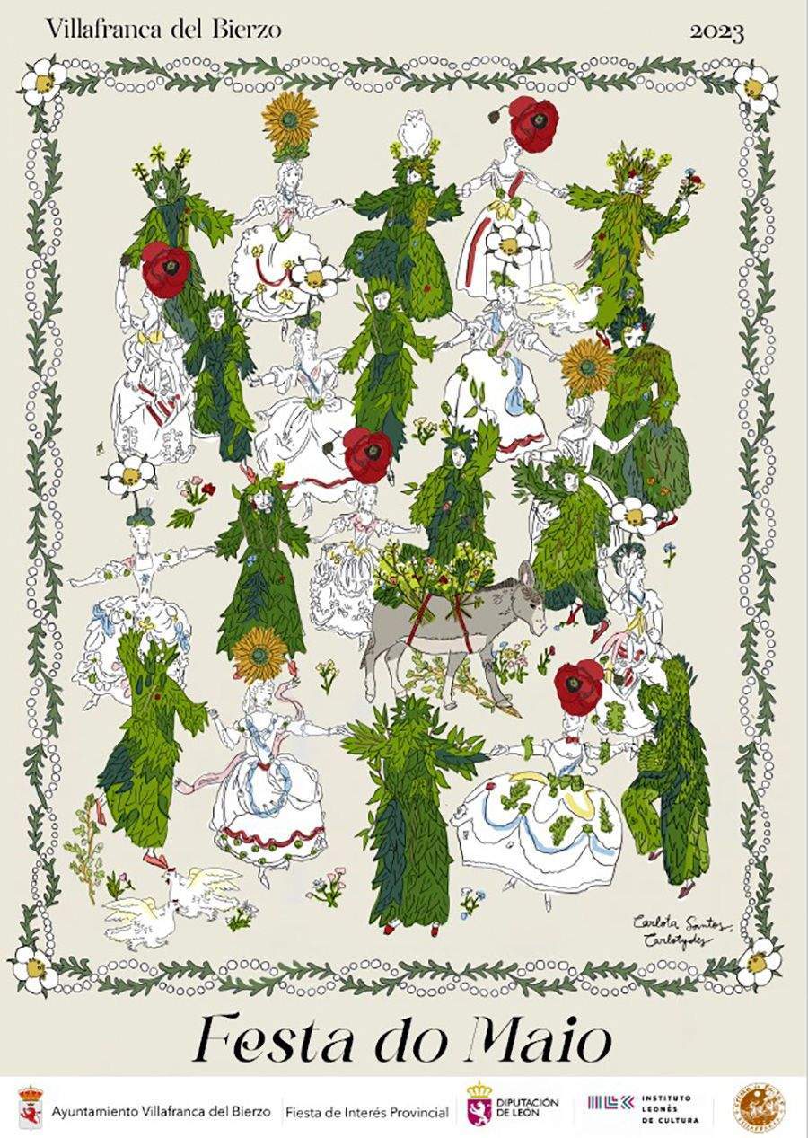 La Festa do ‘Maio’ cumple con la tradición ancestral que marca el ‘florecer’ de las cosechas y despertar del campo como referencia para El Bierzo y en esta edición la ilustradora con raíces de la Villa del Burbia, Carlota Santos, ha sido la encargada de diseñar el cartel.