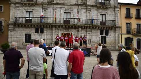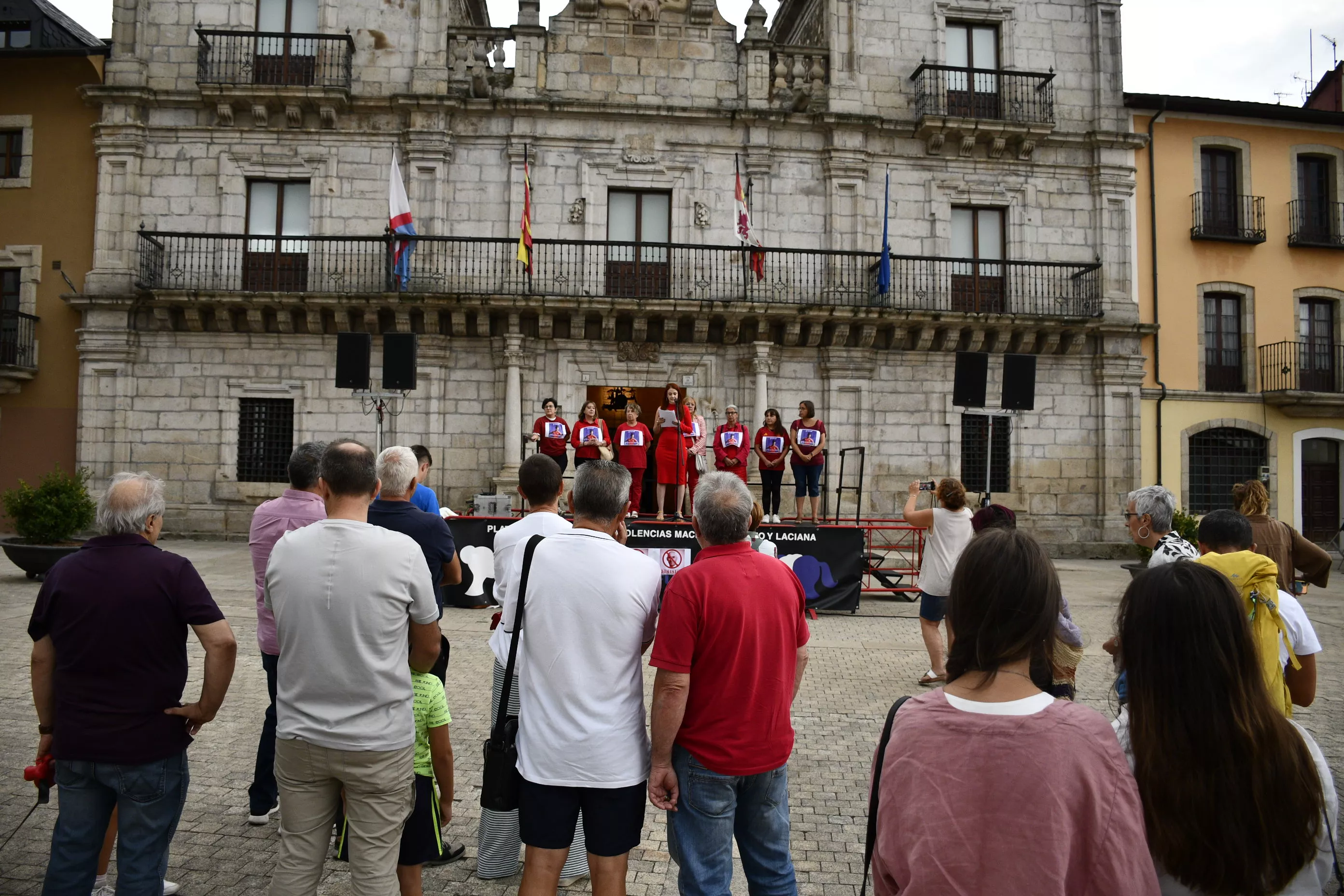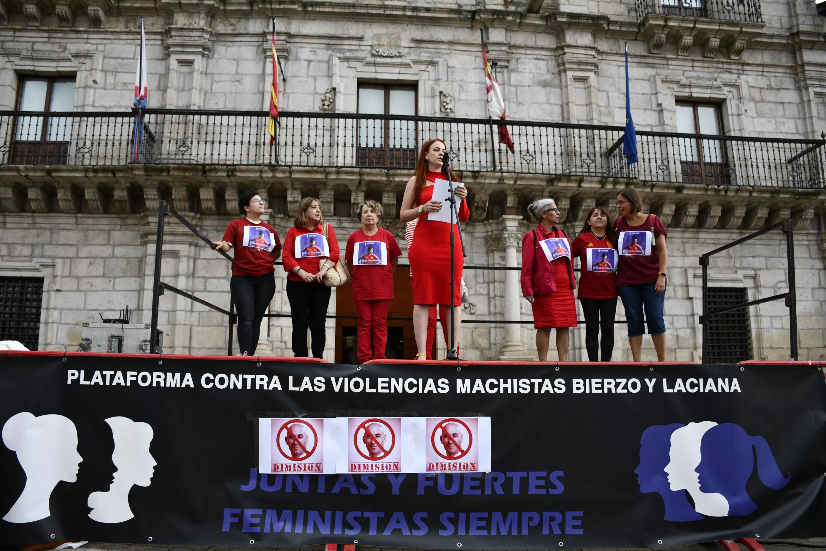 La Plataforma contra las violencias machistas Bierzo y Laciana se ha concentrado este viernes en la Plaza del Ayuntamiento para mostrar su apoyo a la futbolista Jenni Hermoso y en repulsa hacia los comportamientos de Luis Rubiales, presidente de la RFEF.