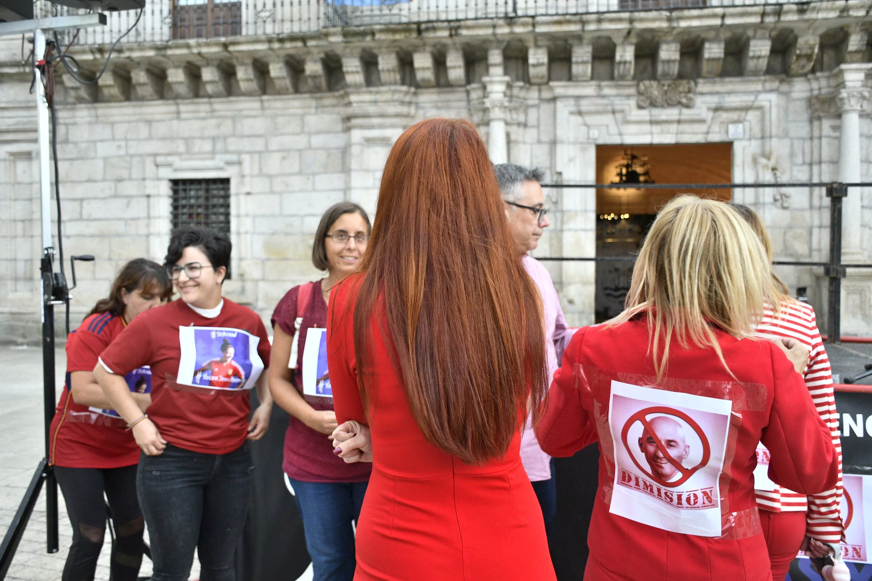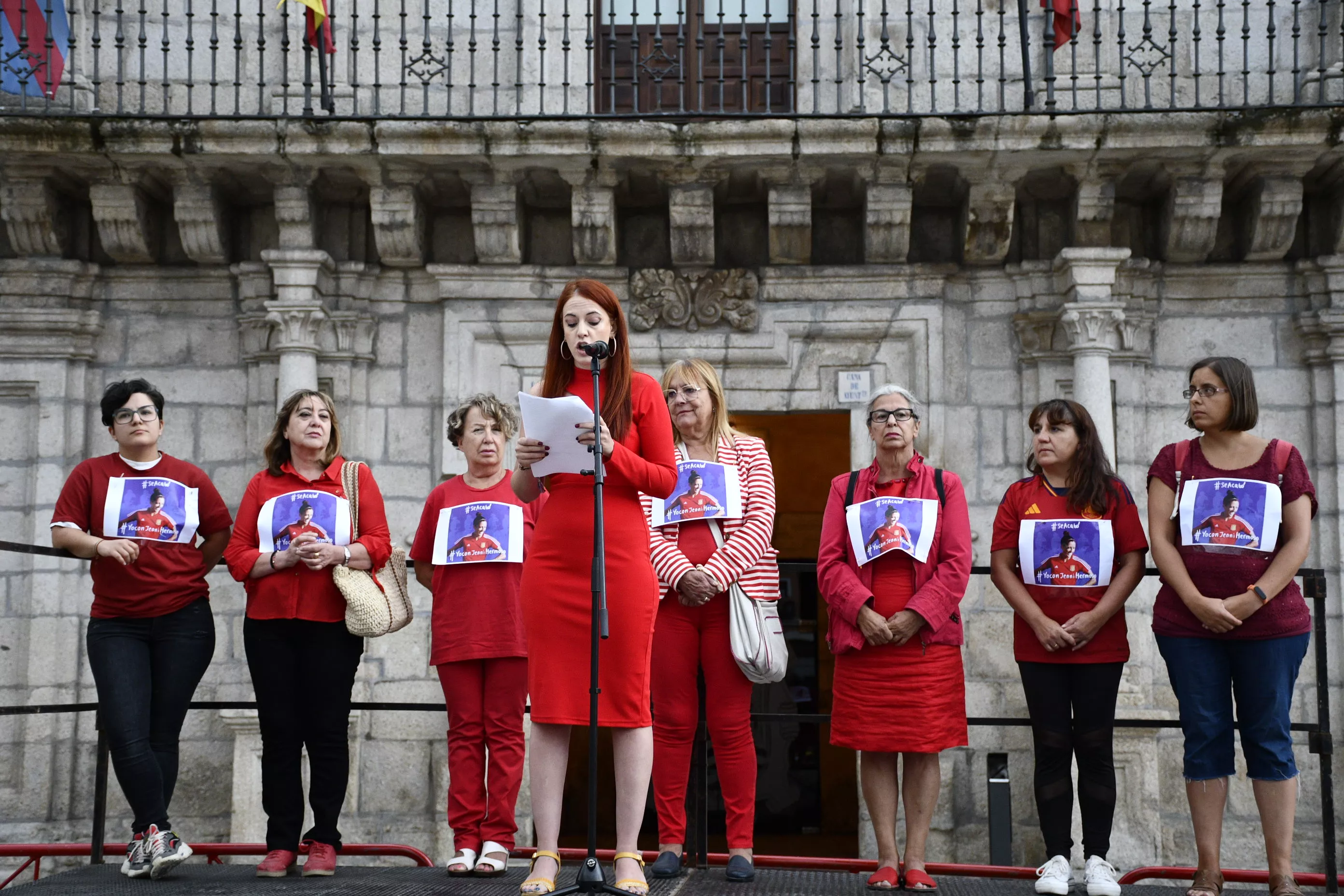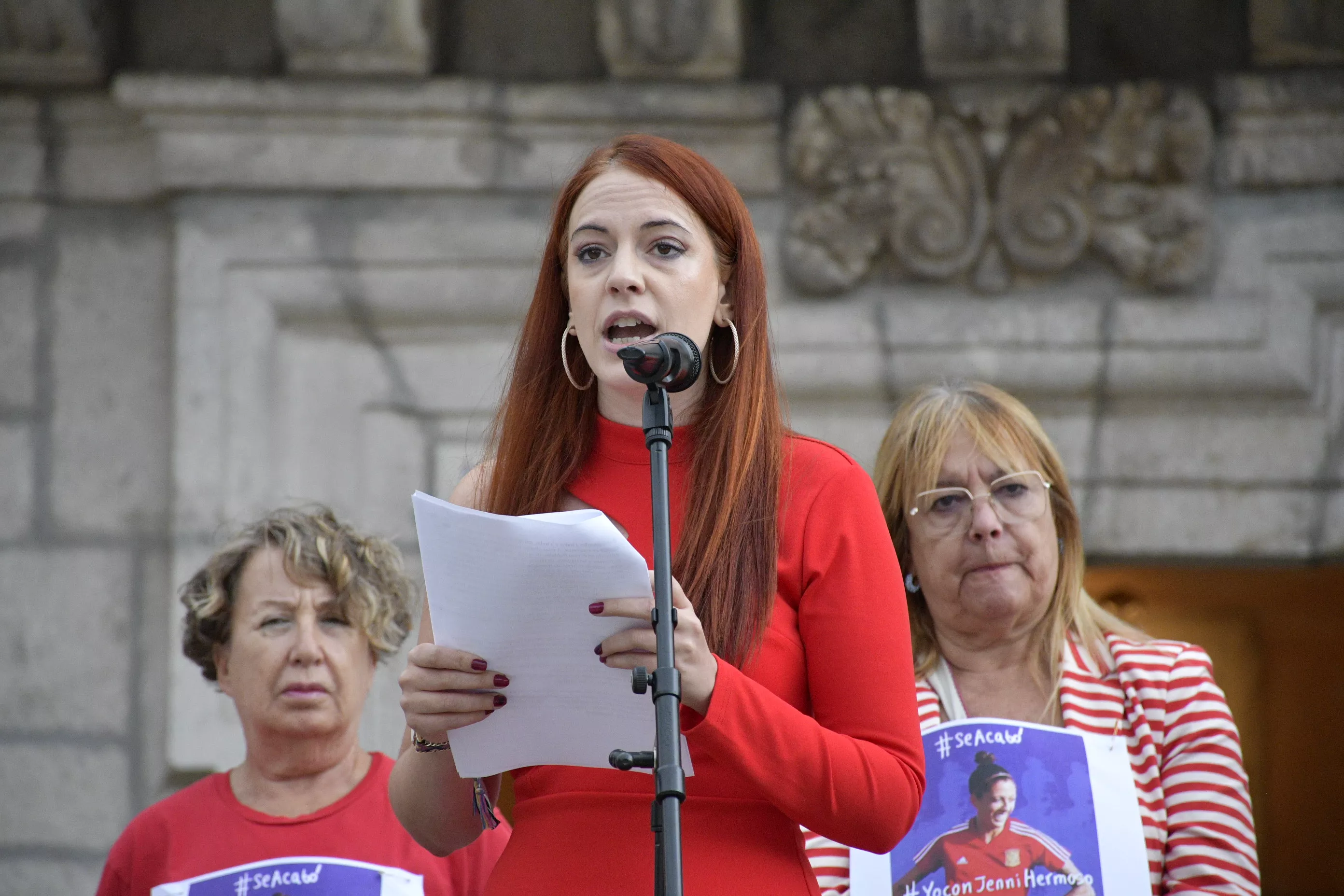 El manifiesto ha sido leído por la antigua concejala de Igualdad, Lorenza González (Podemos), que ha cargado contra la actitud "machista de Rubiales: de nuevo un hombre utilizando nuestro cuerpo como parte de la fiesta". En una tímida concentración a la que se han acercado los vecinos de Ponferrada, han pedido la dimisión del presidente de la RFEF y han mostrado su total apoyo y defensa de Hermoso que sufre, además, "violencia mediática" desde que decidió denunciar lo sucedido con su superior.