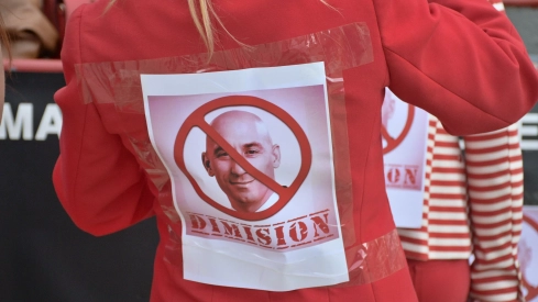 Luis Rubiales, presidente de la Real Federación Española de Fútbol, pidió disculpas tras el revuelo generado por el beso en la boca que le dio a la jugadora Jenni Hermoso durante la entrega de medallas tras ganar el título mundial en Sídney. Aunque a pesar de ello, cuanto tuvo lugar su comparecencia se negó rotundamente a dimitir, acompañando su decisión de un discurso en el que pretendía explicar las circunstancias del beso. Actualmente, la FIFA lo ha sometido a una "suspensión provisional" durante 90 días.