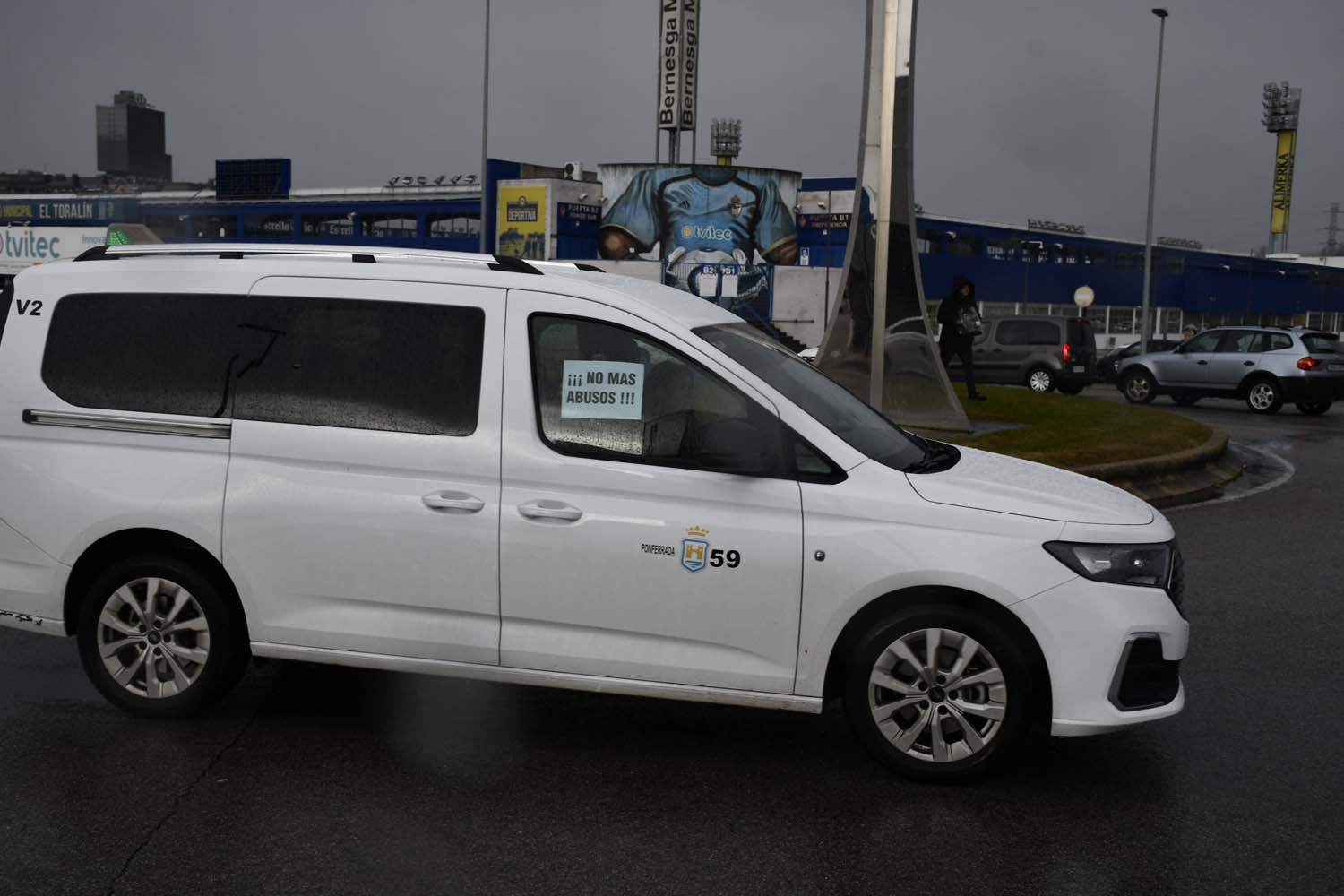 Los taxistas de Ponferrada se han sumado este miércoles, día 29 de enero, a la huelga convocada en todo el país para expresar su rechazo por los precios “abusivos” de los seguros. Durante la mañana de hoy los 65 profesionales del taxi en la capital berciana han protagonizado una marcha lenta desde el Toralín hasta la calle Ancha para mostrar a la ciudadanía los motivos que les han llevado a este paro.