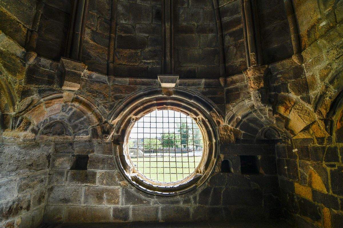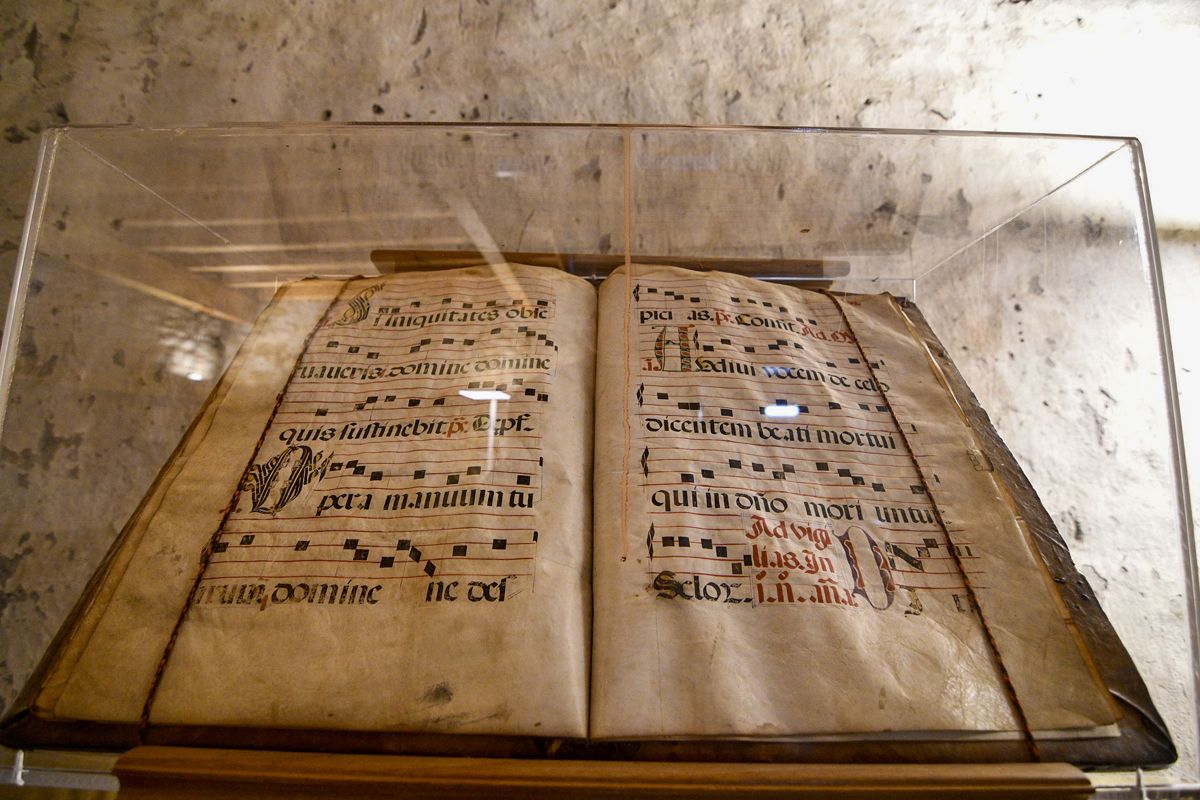 "La sala del Oratorio del Abad fuese empleada más tarde como archivo. Es un espacio no demasiado amplio pero bastante alto formado por una planta cuadrada, cubierto con bóveda de crucería, e iluminada por un gran óculo. Destaca la clave de la bóveda, que tiene tallada la figura de un Cristo en Majestad enmarcado por una mandorla y rodeada por un Tetramorfos", explica ArteGuias.