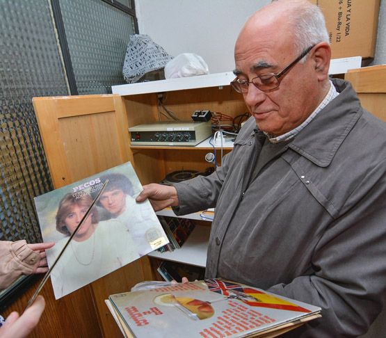 Rellán, rector y director de la institución durante más de 20 años, mostrando algunos vinilos con los que depertaban a los alumnos (Víctor Alón).A su lado y paseando por los principales rincones de la histórica institución es inevitable retroceder en el tiempo y reconstruir las rutinas que, tanto maestros como alumnos, protagonizaron día sí y día también desde aquel incio del primer curso en octubre de 1964, año en el que muchos niños de la Comarca y de la provincia tuvieron que despedirse de sus padres (en la mayoría de los casos emigrantes) para recibir la educación que ningún otro municipio berciano les podía ofrecer.