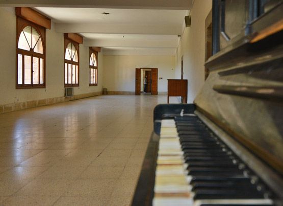 Una sala de estudio, donde los niños y niñas pasaban gran parte del día (Víctor Alón).En esa misma época José Antonio Librán también iniciaba su etapa en el colegio, pero en su caso como alumno. El vecino de la localidad ingresó con apenas diez años y permaneció en el mismo hasta los 17. A pesar de que él no estaba interno, también se quedaba a comer allí en alguna que otra ocasión “porque mi madre trabajaba como cocinera”, cuenta mientras observa con cierta nostalgia los pasillos por los que tantas veces jugó a pillar de pequeño. “A mediodía, bajábamos al comedor, cogíamos nuestra servilleta del casillero y tomábamos asiento para devorar los platos que nos preparaban a diario", mientras tanto un fraile les leía desde un púlpito que coronaba el salón -hoy convertido en jardinera-. “Apenas teníamos una hora y media hasta que volvíamos a retomar las clases a las tres, por lo que, si acabábamos pronto, podíamos salir al patio a jugar un rato antes de volver al estudio”. Sino, ya tenían que esperar a las cinco para poder disfrutar del recreo, un tiempo de ocio que duraba apenas 60 minutos, “porque de seis a nueve había que volver a hincar los codos”, añade José Antonio esbozando una gran sonrisa.