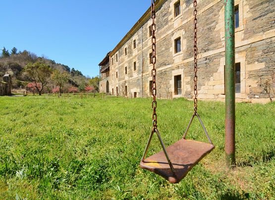 Vista principal del monasterio que sirvió de colegio y hogar para niños en Vega de Espinareda (Víctor Alón).No todos los cuentos tienen un final feliz. O por lo menos no todos acaban como uno espera y desea. El desenlace de la historia del Colegio Diocesano de San Andrés de Vega de Espinareda, inaugurado en 1964, fue bastante "triste e injusto" para una buena parte de los más de 8.000 alumnos que pasaron por el centro hasta el finales de 1995, año en el que profesores y empleados se vieron obligados a echar el cierre por falta de subvención. 20 años después de este suceso, el San Andrés vuelve a abrir sus puertas para recibir al diario Infobierzo y hacer un recorrido por sus principales estancias recordando algunas de las anécdotas más interesantes de sus treinta años de vida.