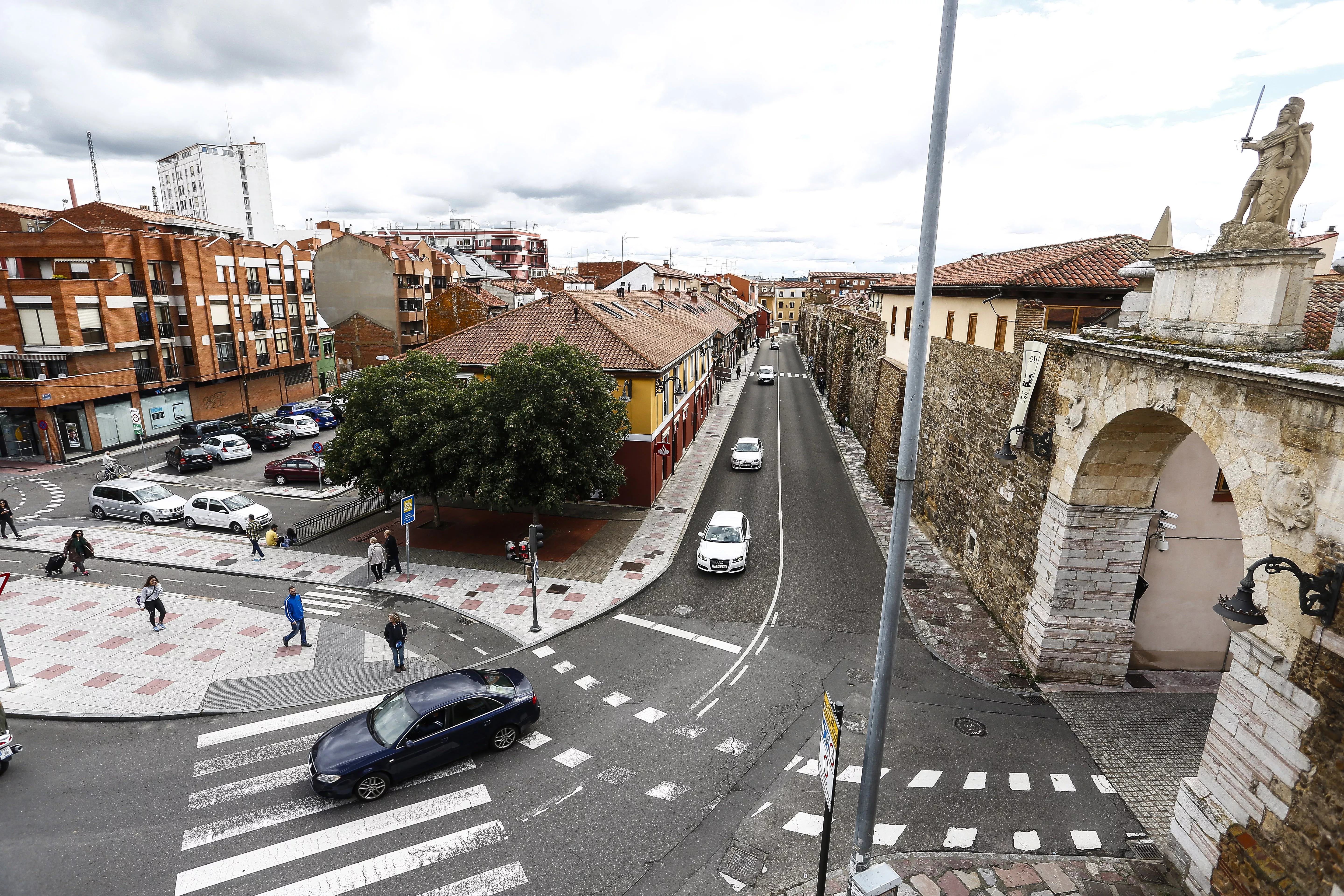 “La nueva configuración de la calle y su tratamiento más acorde con el entorno de un BIC, como es la muralla de León, ha dado prioridad a las zonas estanciales y zonas verdes que hacen más amable el espacio a la vez que ayudan a proteger el monumento, eliminando el anterior dominio en la”, resumen desde el Consistorio leonés.