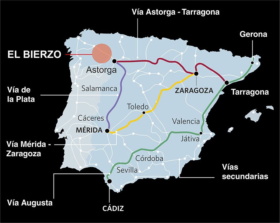 Uno de los mayores intereses fue hacer llegar el oro con rapidez y seguridad a Roma desde Las Médulas, la mayor mina aurífera a cielo abierto del imperio romano.