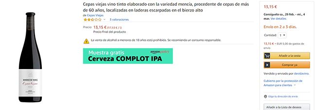 Como no podía ser de otro modo, los vinos del Bierzo también pueden empaquetarse en la típica caja del gigante Amazon para traspasar fronteras y permitir que cualquiera, en casi cualquier parte del mundo, pueda brindar con un Denominación de Origen Bierzo. De hecho, la mayoría de bodegas que venden a través de Amazon presumen de la etiqueta 'prime', para clientes premium que gozan de muchas ventajas en la compra, tales como eludir los gastos de envío y recibir tu pedido en cuestión de 24 horas.