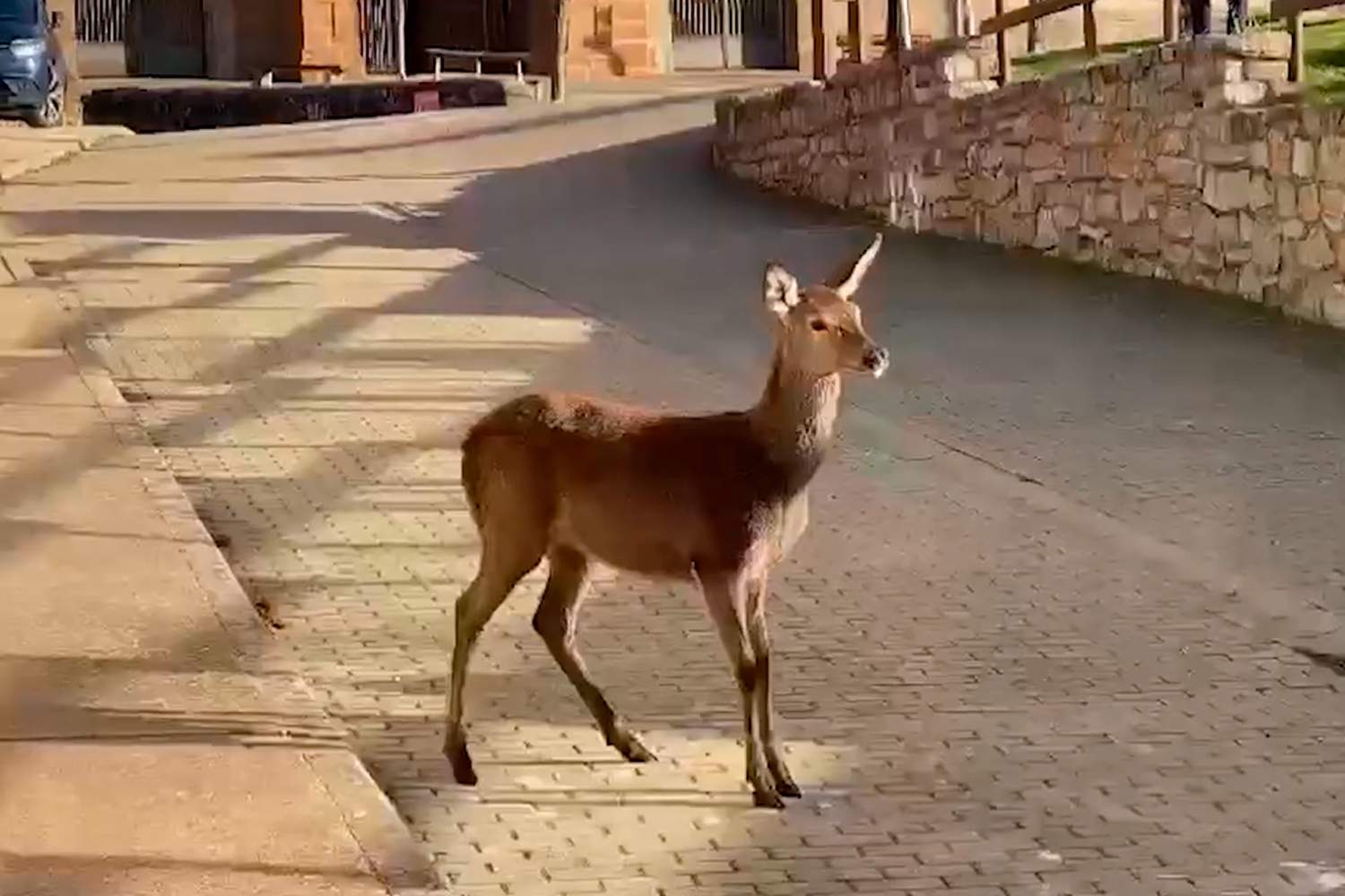 Un corzo desorientado se pasea por el casco urbano de Prioro (León)